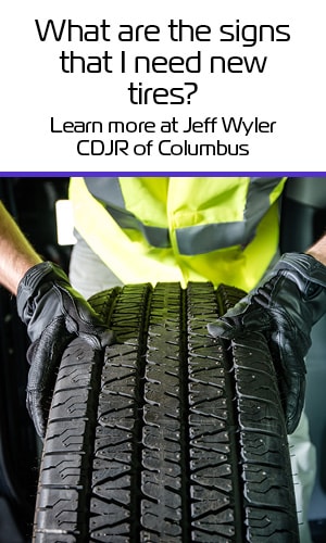 Paying attention to the condition of your tires is essential for the safety and performance of your vehicle. If you notice any of the signs mentioned above, such as low tread depth, uneven wear, damage, or excessive age, it's time to replace your tires. Regular tire rotations and inspections can also help extend the life of your tires and ensure your vehicle remains safe on the roads around Columbus and Lancaster, OH. If you need new tires or have any concerns about your tire condition, visit Jeff Wyler Chrysler Dodge Jeep® RAM of Columbus. Our expert service team is happy to assist you.
