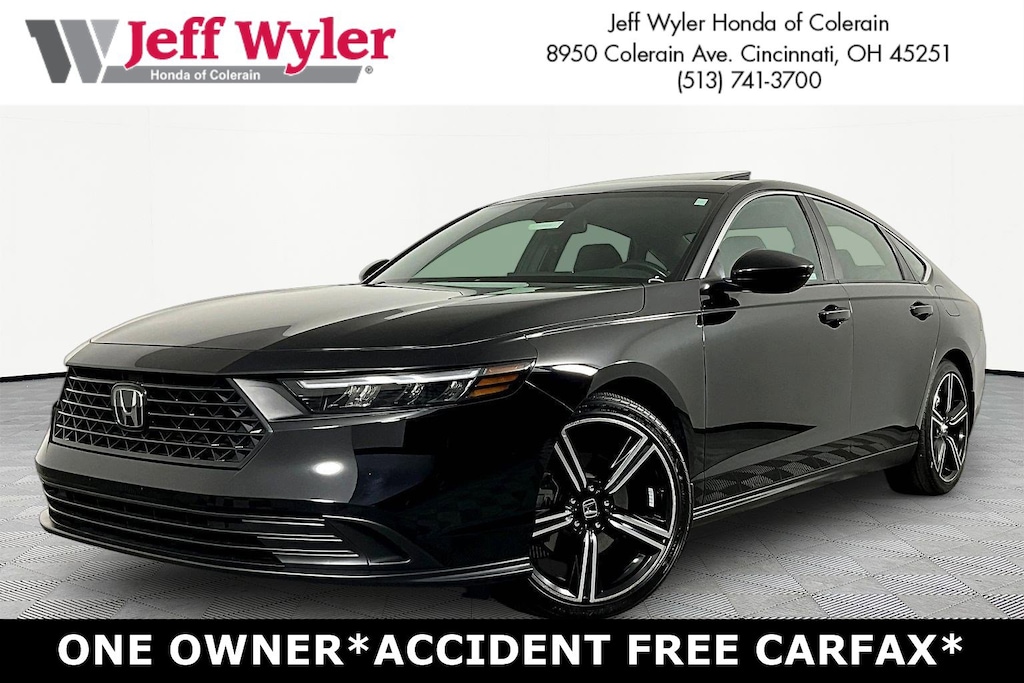 Jeff Wyler Honda of Colerain is very proud to offer this good-looking 2025 Honda Accord Hybrid Sport in . Well equipped with: 4-Wheel Disc Brakes, 8 Speakers, ABS brakes, Adaptive Cruise Control: Adaptive Cruise Control (ACC) with Low-Speed Follow, Air Conditioning, Alloy wheels, AM/FM radio, Apple CarPlay/Android Auto, Auto High-beam Headlights, Automatic temperature control, Blind Spot Information (BSI) System warning, Brake assist, Bumpers: body-color, Compass, Delay-off headlights, Driver door bin, Driver vanity mirror, Dual front impact airbags, Dual front side impact airbags, Electronic Stability Control, Emergency communication system: HondaLink, Exterior Parking Camera Rear, Fabric Seat Trim, Four wheel independent suspension, Front anti-roll bar, Front Bucket Seats, Front Center Armrest, Front dual zone A/C, Front reading lights, Fully automatic headlights, Heated Front Bucket Seats, Heated front seats, Illuminated entry, Knee airbag, Lane departure: Lane Keeping Assist System (LKAS) active, Leather Shift Knob, Leather steering wheel, Low tire pressure warning, Occupant sensing airbag, Outside temperature display, Overhead airbag, Overhead console, Panic alarm, Passenger door bin, Passenger vanity mirror, Power door mirrors, Power driver seat, Power moonroof, Power steering, Power windows, Radio data system, Radio: 180-Watt Audio System, Rear anti-roll bar, Rear reading lights, Rear seat center armrest, Rear side impact airbag, Rear window defroster, Remote keyless entry, Security system, Speed control, Speed-sensing steering, Speed-Sensitive Wipers, Split folding rear seat, Spoiler, Steering wheel mounted audio controls, Telescoping steering wheel, Tilt steering wheel, Traction control, Trip computer, Variably intermittent wipers, and Wheels: 19" x 8.5J Berlina Black.