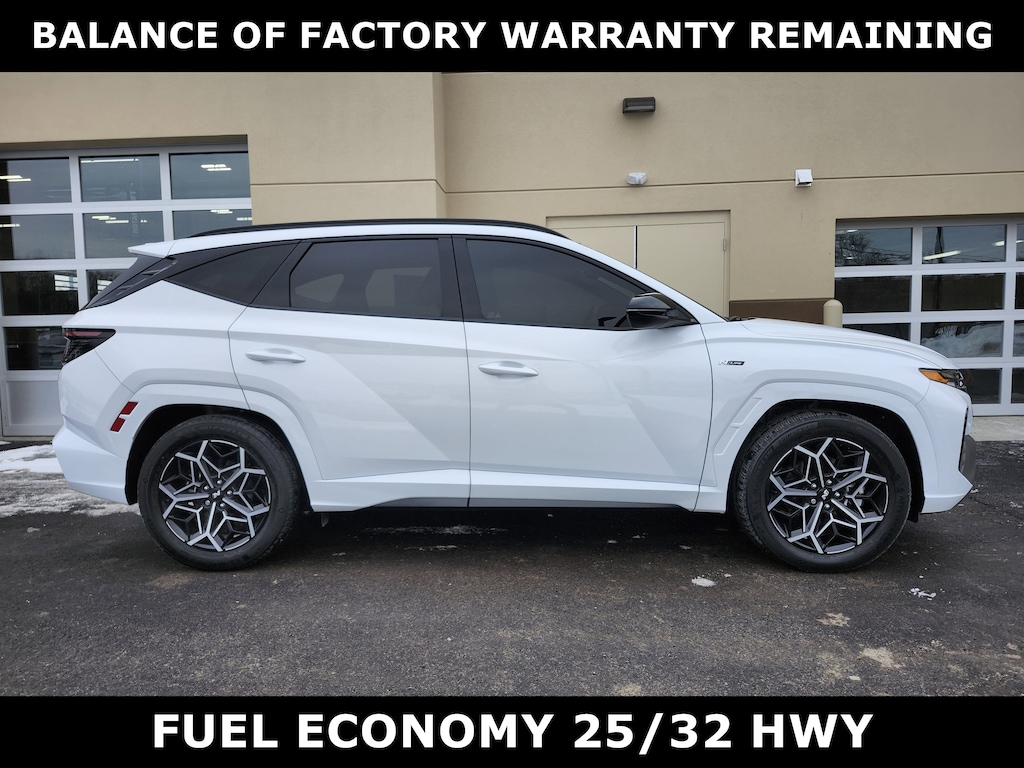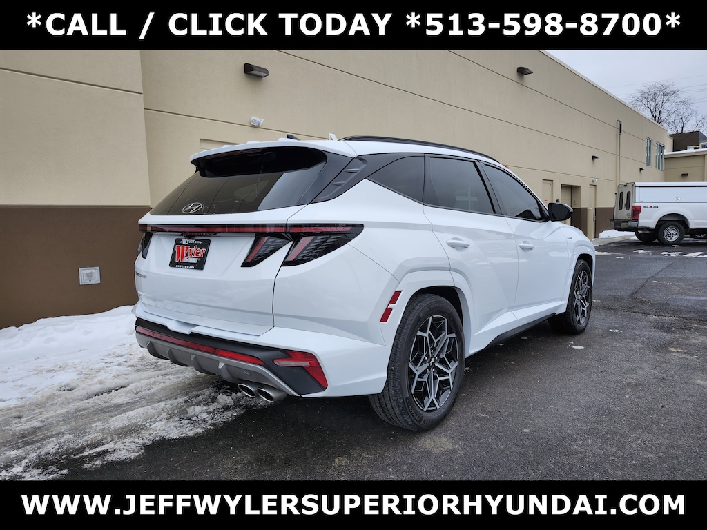 Jeff Wyler Superior Hyundai is delighted to offer this gorgeous 2023 Hyundai Tucson N Line in Serenity White Pearl. Well equipped with: Cargo Package (Cargo Net, Cargo Tray, and First Aid Kit), Option Group 01, Hyundai Certified Used Vehicles Certified, 3.648 Axle Ratio, 4-Wheel Disc Brakes, 8 Speakers, ABS brakes, Air Conditioning, Alloy wheels, AM/FM radio: SiriusXM, Apple CarPlay & Android Auto, Auto High-beam Headlights, Auto-dimming Rear-View mirror, Automatic temperature control, Brake assist, Bumpers: body-color, Carpeted Floor Mats, Delay-off headlights, Driver door bin, Driver vanity mirror, Dual front impact airbags, Dual front side impact airbags, Electronic Stability Control, Emergency communication system: Blue Link Connected Car Service (3-year complimentary subscription), Four wheel independent suspension, Front anti-roll bar, Front Bucket Seats, Front Center Armrest, Front dual zone A/C, Front reading lights, Fully automatic headlights, Garage door transmitter: HomeLink, Heated door mirrors, Heated Front Bucket Seats, Heated front seats, Illuminated entry, Low tire pressure warning, Navigation System, Occupant sensing airbag, Outside temperature display, Overhead airbag, Overhead console, Panic alarm, Passenger door bin, Passenger vanity mirror, Power door mirrors, Power driver seat, Power Liftgate, Power moonroof, Power steering, Power windows, Radio data system, Radio: Bose Premium w/AM/FM/HD/SiriusXM Audio System, Rear anti-roll bar, Rear reading lights, Rear seat center armrest, Rear window defroster, Rear window wiper, Remote keyless entry, Roof rack: rails only, Security system, Speed control, Split folding rear seat, Spoiler, Sport Combination Seat Trim, Steering wheel mounted audio controls, Tachometer, Telescoping steering wheel, Tilt steering wheel, Traction control, Trip computer, Turn signal indicator mirrors, Variably intermittent wipers, Wheel Locks, and Wheels: N Line 19" x 7.5J" Alloy. CARFAX One-Owner. Clean CARFAX. This sales price excludes tax, title, and dealer fees. While every reasonable effort is made to ensure the accuracy of this information, we are not responsible for any errors or omissions contained on these pages. Used vehicles 10 years of age or newer with less than 100,000 miles are eligible for the Wyler Assurance Program, but eligible vehicles must pass our reconditioning process and multi-point inspection. Provided the vehicle passes inspection, vehicles will be eligible for the 6 month/6,000 mile limited warranty. The 6 month/6,000 mile limited warranty is NOT available on AS-IS vehicles, wholesale vehicles, lease buyback/pass-thru vehicles or un-inspected vehicles. Note that this program can also apply to vehicles where the remaining factory coverage is less than 6 months or 6,000 miles. Please check the Federal Trade Commission (FTC) Buyers guide on the vehicle for full details as to whether or not warranty coverage may apply. Contact Dealer for additional details. The Wyler Assurance 6 month/6,000 Mile limited warranty ends 6 months from the date of the Retail Purchase Agreement (BUYERS ORDER) or when the vehicle's odometer registers 6,000 additional miles to the mileage listed on the BUYERS ORDER, whichever comes first.Your Deductible - The warranty holder on your contract pays the first $100 of each covered repair.
