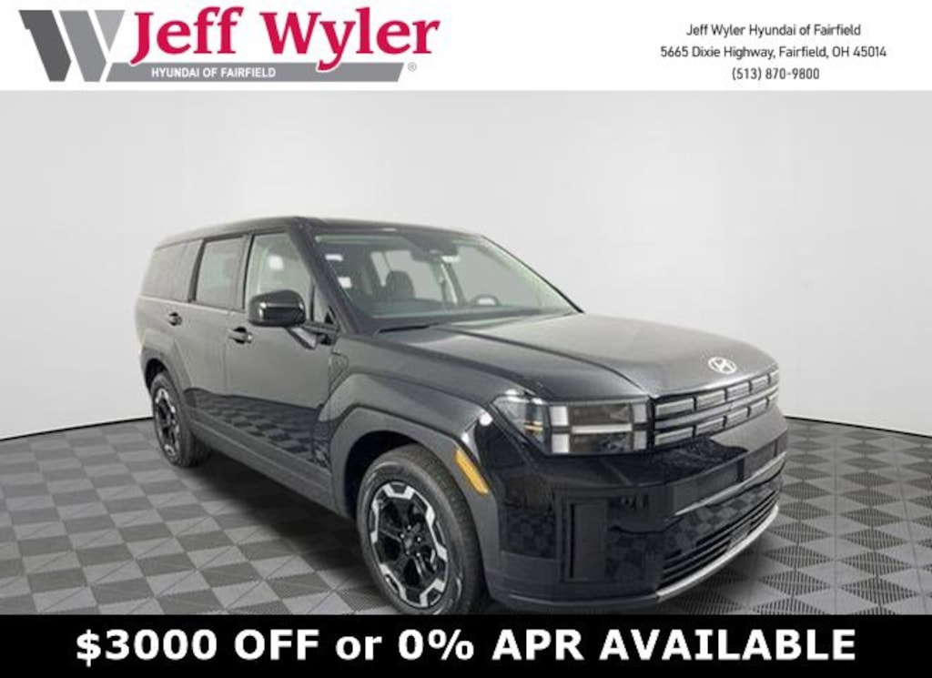 Jeff Wyler Hyundai of Fairfield is honored to offer this outstanding 2025 Hyundai Santa Fe SE in Phantom Black. Well equipped with: Option Group 01, Tow & Go Package (Ball Mount Kit and Tow Hitch), Hyundai Certified Used Vehicles Certified, AWD, Black Cloth, Android Auto, Apple CarPlay, CALL NOW FOR YOUR VIP APPOINTMENT 513-870-9800, GUARANTEED FINANCING!! NO MATTER YOUR SITUATION WE CAN GET AN APPROVAL!!, THE #1 Volume dealer in the region! Come see why for yourself Today!!, 18" x 7.5J Alloy Wheels, 3rd row seats: bench, 4-Wheel Disc Brakes, 6 Speakers, ABS brakes, Air Conditioning, Alloy wheels, AM/FM radio: SiriusXM, Apple CarPlay & Android Auto, Auto High-beam Headlights, Brake assist, Bumpers: body-color, Cargo Net, Carpeted Floor Mats, Delay-off headlights, Driver door bin, Driver vanity mirror, Dual front impact airbags, Dual front side impact airbags, Electronic Stability Control, Emergency communication system, Exterior Parking Camera Rear, First Aid Kit, Four wheel independent suspension, Front anti-roll bar, Front Bucket Seats, Front Center Armrest, Front reading lights, Fully automatic headlights, Heated door mirrors, Illuminated entry, Knee airbag, Leather steering wheel, Low tire pressure warning, Occupant sensing airbag, Outside temperature display, Overhead airbag, Overhead console, Panic alarm, Passenger door bin, Passenger vanity mirror, Power door mirrors, Power Liftgate, Power steering, Power windows, Radio: AM/FM/HD Display Audio, Rear anti-roll bar, Rear seat center armrest, Rear side impact airbag, Rear window defroster, Rear window wiper, Remote keyless entry, Security system, Speed control, Speed-sensing steering, Split folding rear seat, Spoiler, Steering wheel mounted audio controls, Tachometer, Telescoping steering wheel, Tilt steering wheel, Traction control, Trip computer, Variably intermittent wipers, and YES Essentials Stain-Resistant Cloth Seat Trim. Certified. Hyundai Certified Used Vehicles Details: * Powertrain Limited Warranty: 120 Month/100,000 Mile (whichever comes first) from original in-service date * Roadside Assistance * Warranty Deductible: $50 * Limited Warranty: 60 Month/60,000 Mile (whichever comes first) from original in-service date * Includes 10-year/Unlimited Mileage Roadside Assistance with Rental Car and Trip Interruption Reimbursement; Please See Dealers for Specific Vehicle Eligibility Requirements. 10-Year/100,000 Mile Hybrid/EV Battery Warranty. 3-Months SiriusXM Trial Subscription. Complimentary 1 Year (Connected Care & Remote Pkgs). * Vehicle History * 173+ Point InspectionTO CHECK ON THE AVAILABILITY OF THIS VEHICLE REACH OUT TO ONE OF OUR TEAM MEMBERS!! ALSO SHOP ONLINE AT https://www.jeffwylerhyundaioffairfield.com/ Proudly Serving: Cincinnati, Dayton, Columbus, Louisville, Lexington, Indianapolis, Hamilton, Florence, Alexandria, Beavercreek, Springdale, West Chester, Monroe, Fairfield, Kenwood, Newport and all of greater Cincinnati Ohio, Indiana, and Northern Kentucky.