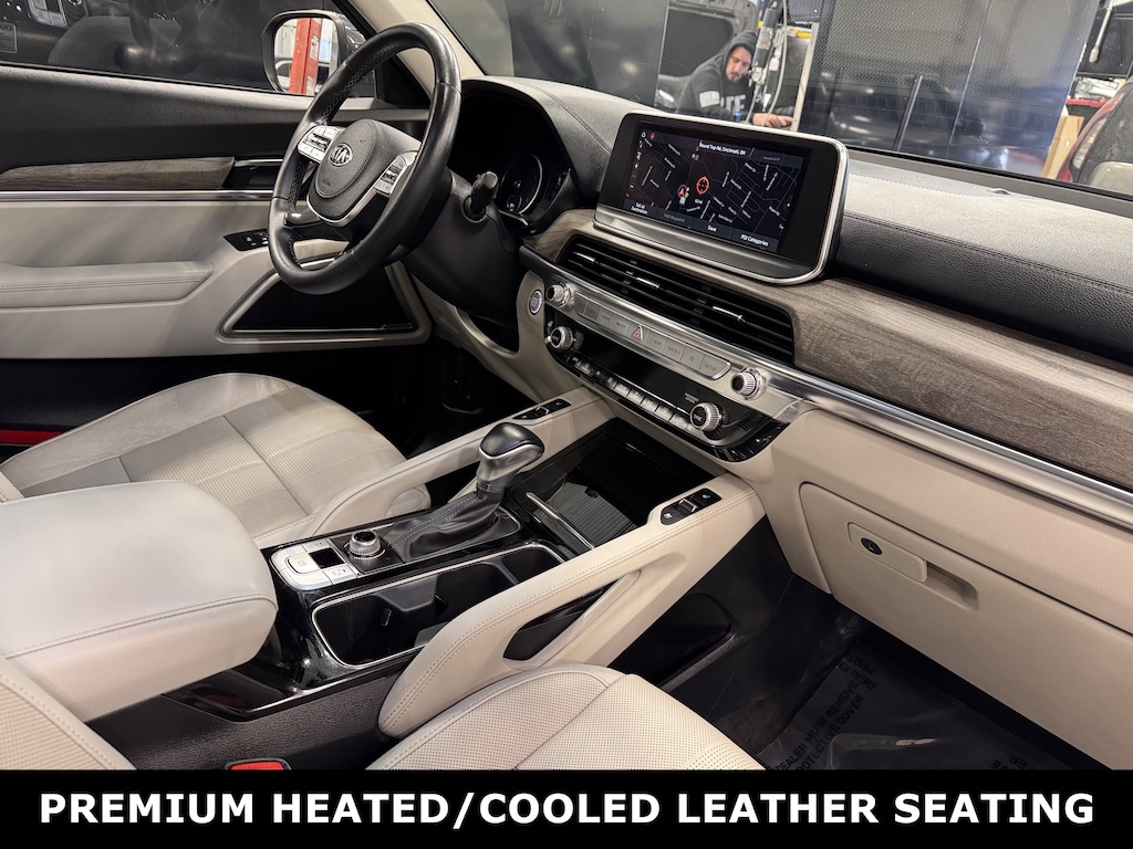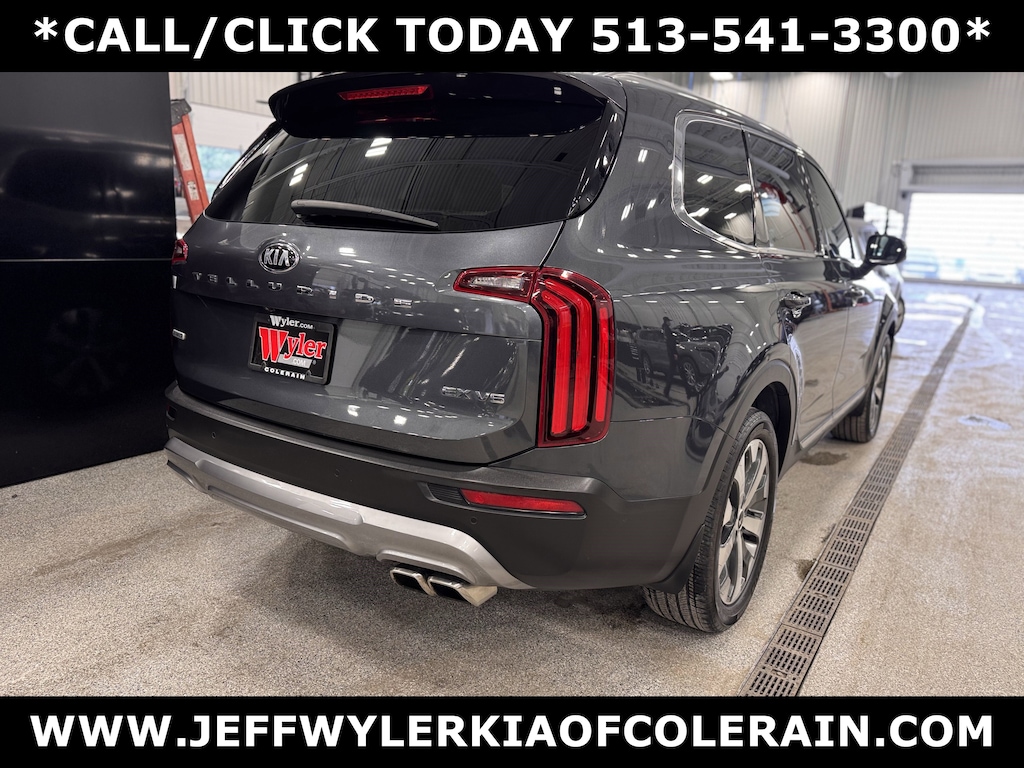 Jeff Wyler Kia of Colerain is pleased to offer this good-looking 2021 Kia Telluride EX in Gravity Gray. EX Premium Package (2nd Row Captain Chairs, LED Headlamps, Satin Chrome Roof Rails, and Wheels: 7.5" x 20" Machined Finish Alloy), 3.648 Axle Ratio, 3rd row seats: split-bench, 4-Wheel Disc Brakes, 6 Speakers, ABS brakes, Air Conditioning, Alloy wheels, AM/FM radio: SiriusXM, Apple CarPlay & Android Auto, Auto-dimming Rear-View mirror, Automatic temperature control, Brake assist, Bumpers: body-color, Compass, Delay-off headlights, Driver door bin, Driver vanity mirror, Dual front impact airbags, Dual front side impact airbags, Electronic Stability Control, Emergency communication system: 911 Connect, Four wheel independent suspension, Front anti-roll bar, Front Bucket Seats, Front Center Armrest, Front dual zone A/C, Front reading lights, Fully automatic headlights, Heated & Ventilated Front Bucket Seats, Heated door mirrors, Heated front seats, Heated steering wheel, Illuminated entry, Knee airbag, Leather Seat Trim, Leather Shift Knob, Leather steering wheel, Low tire pressure warning, Mud Guard Kit, Navigation System, Occupant sensing airbag, Outside temperature display, Overhead airbag, Overhead console, Panic alarm, Passenger door bin, Passenger vanity mirror, Power door mirrors, Power driver seat, Power Liftgate, Power moonroof, Power passenger seat, Power steering, Power windows, Radio data system, Radio: AM/FM/SIRIUS Display Audio, Rear air conditioning, Rear anti-roll bar, Rear audio controls, Rear reading lights, Rear seat center armrest, Rear window defroster, Rear window wiper, Reclining 3rd row seat, Remote keyless entry, Roof rack: rails only, Security system, Smart Key w/ Push Button and Remote Start, Speed control, Speed-sensing steering, Split folding rear seat, Spoiler, Steering wheel mounted audio controls, Tachometer, Telescoping steering wheel, Tilt steering wheel, Traction control, Trip computer, Turn signal indicator mirrors, Variably intermittent wipers, Ventilated front seats, Wheel Locks, and Wheels: 7.5" x 18" Machined Finish Alloy Our PRE-OWNED vehicles are put through a rigorous 167- POINT QUALITY ASSURANCE INSPECTION along with an average amount of over $1,400.00 SPENT to recondition each vehicle so we can be sure to deliver you the highest quality vehicle like you deserve! ***ONLINE PRICE DOES NOT INCLUDE WYLER FAMILY FIRST PACKAGE***