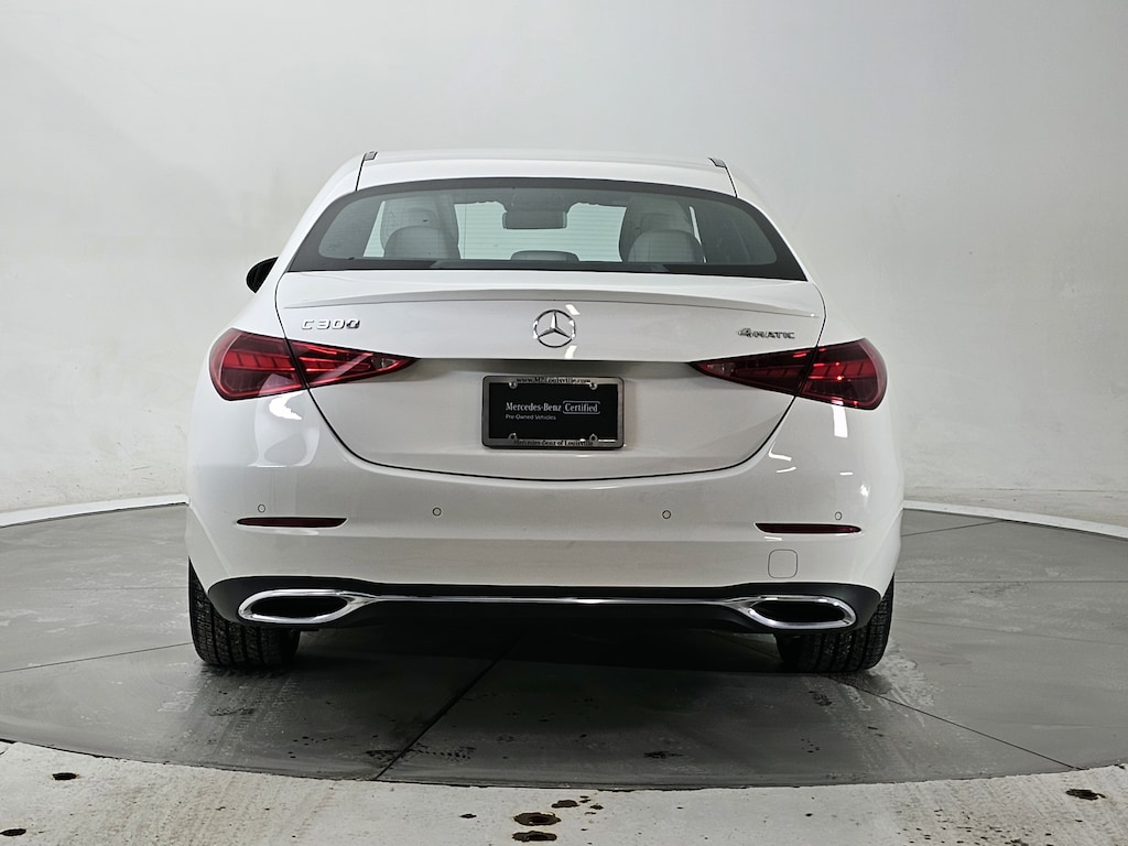 White 2024 Mercedes-Benz C-Class C 300 4MATIC® 4MATIC® 9-Speed Automatic 2.0L I4 Turbocharged 4MATIC®, 18" 5 Spoke, 4-Wheel Disc Brakes, Active Cruise Control, Active Lane Change Assist, Air Conditioning, Automatic temperature control, Black Fabric Headliner, Bumpers: body-color, Front dual zone A/C, Heated door mirrors, Heated Steering Wheel, Low tire pressure warning, Occupant sensing airbag, Overhead airbag, Power door mirrors, Power driver seat, Power steering, Power windows, Rear seat center armrest, Remote keyless entry, Tachometer, Telescoping steering wheel, Traction control, Turn signal indicator mirrors.