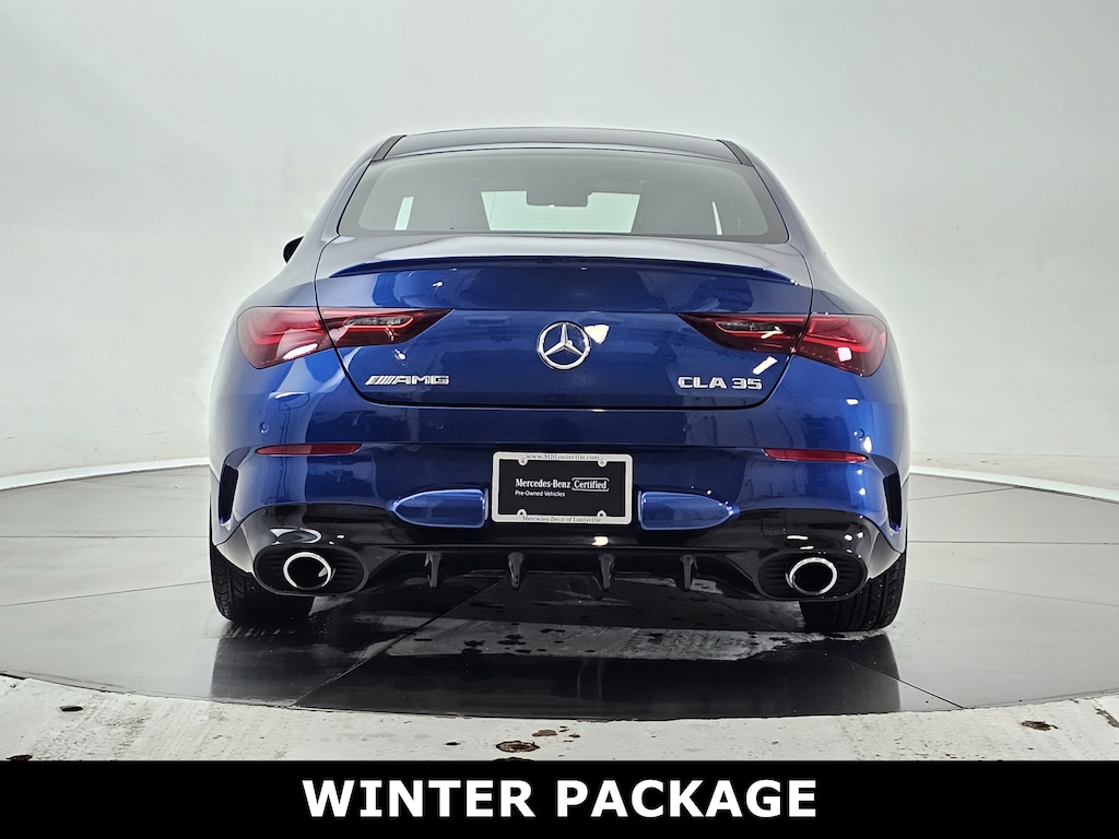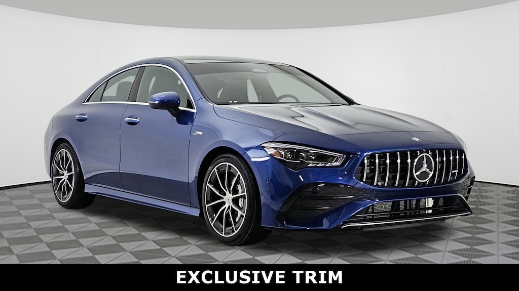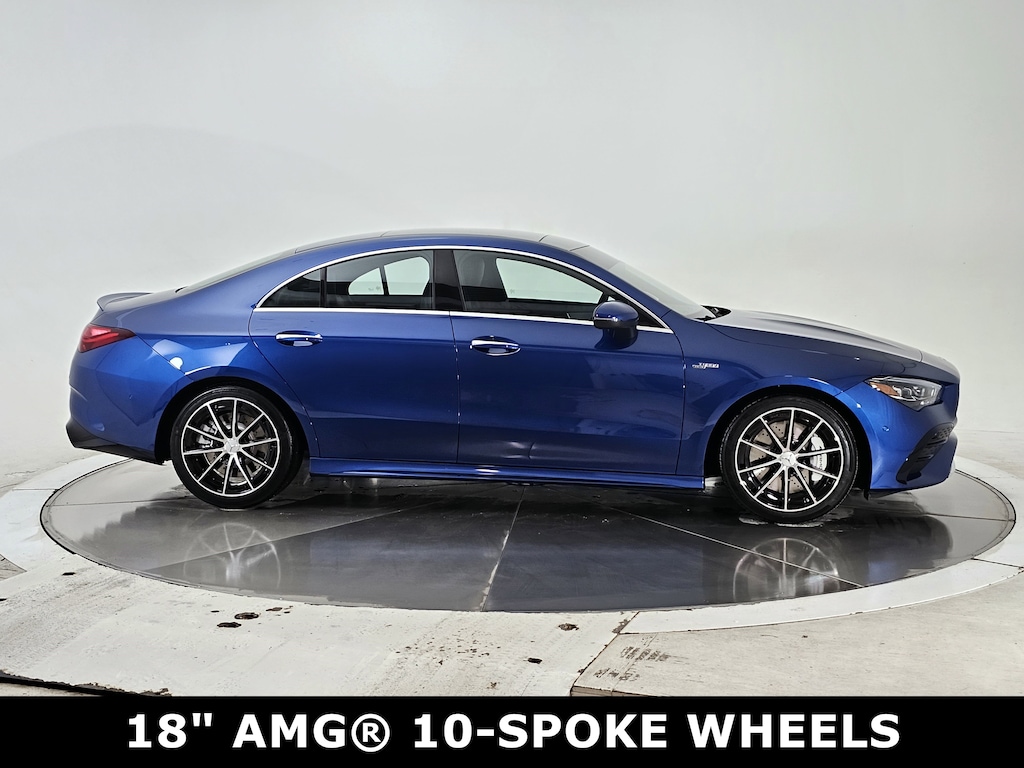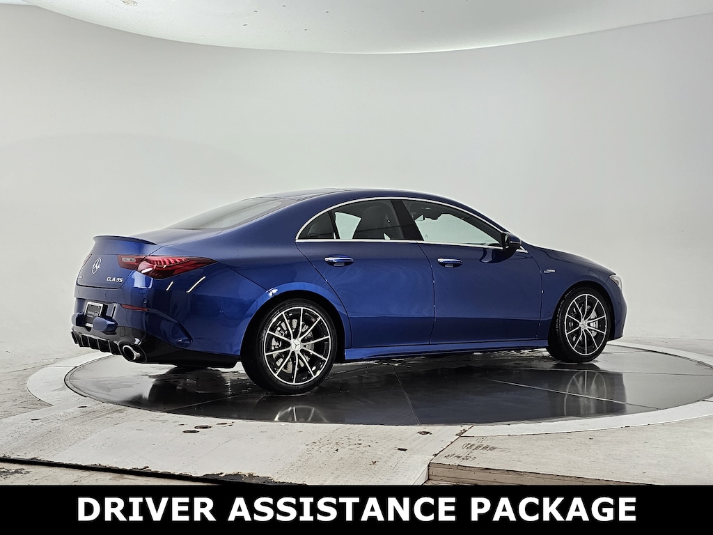 Starling Blue Metallic 2025 Mercedes-Benz CLA 35 AMG® 4MATIC® 8-Speed Automatic 2.0L I4 Turbocharged 2.0L I4 Turbocharged, Active Distance Assist DISTRONIC®, Active Lane Keeping Assist, Active LED Headlamps, Active Speed Limit Assist, Active Steering Assist, AMG® Illuminated Door Sills, Augmented Video For Navigation, Driver Assistance Package, Exclusive Trim, Heated Steering Wheel, Heated Washer System, MB Navigation, PRE-SAFE® System, Traffic Sign Assist, Wheels: 18" AMG® 10-Spoke, Winter Package.
