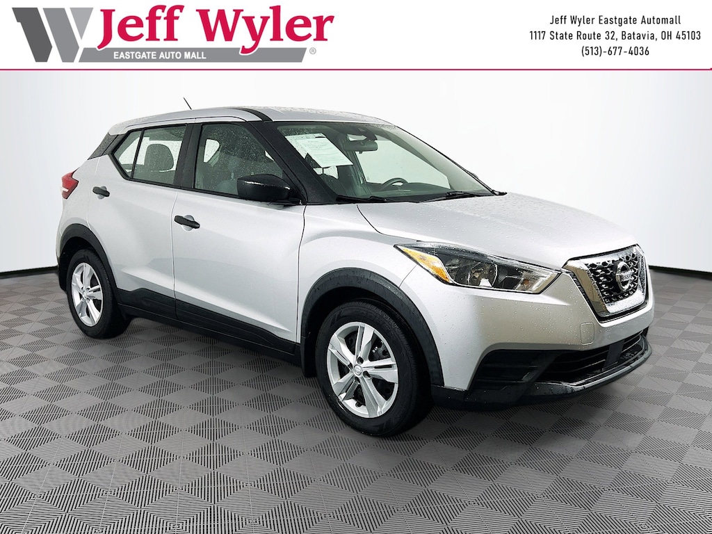 Jeff Wyler Eastgate Auto Mall is proud to offer this wonderful 2020 Nissan Kicks S in Brilliant Silver Metallic. Well equipped with: 16" Steel Wheels w/Full Covers, 3.927 Axle Ratio, 6 Speakers, ABS brakes, Air Conditioning, AM/FM radio, Auto High-beam Headlights, Blind Spot Warning, Brake assist, Bumpers: body-color, Carpeted Floor Mats w/Cargo Mat, Center Armrest w/Storage, Cloth Seat Trim, Driver door bin, Driver vanity mirror, Driver's Seat Mounted Armrest, Dual front impact airbags, Dual front side impact airbags, Electronic Stability Control, Front anti-roll bar, Front Bucket Seats, Front reading lights, Front wheel independent suspension, Fully automatic headlights, Illuminated entry, Knee airbag, Low tire pressure warning, Occupant sensing airbag, Outside temperature display, Overhead airbag, Panic alarm, Passenger door bin, Passenger vanity mirror, Power door mirrors, Power steering, Power windows, Radio data system, Radio: AM/FM Audio System, Rear Parking Sensors, Rear reading lights, Rear side impact airbag, Rear window defroster, Rear window wiper, Remote keyless entry, Speed control, Splash Guards Grain (4 Piece), Split folding rear seat, Sport steering wheel, Steering wheel mounted audio controls, Tachometer, Telescoping steering wheel, Tilt steering wheel, Traction control, Trip computer, and Variably intermittent wipers. Clean CARFAX. Certified. Awards: * 2020 KBB.com 10 Coolest New Cars Under $20,000 Ask about available certifications. Used vehicles 10 years of age or newer with less than 100,000 miles are eligible for the Wyler Assurance Program, but eligible vehicles must pass our reconditioning process and multi-point inspection. Provided the vehicle passes inspection, vehicles will be eligible for the 6 month/6,000 mile limited warranty. The 6 month/6,000 mile limited warranty is NOT available on AS-IS vehicles, wholesale vehicles, lease buyback/pass-thru vehicles or un-inspected vehicles. Note that this program can also apply to vehicles where the remaining factory coverage is less than 6 months or 6,000 miles. Please check the Federal Trade Commission (FTC) Buyers guide on the vehicle for full details as to whether or not warranty coverage may apply. Contact Dealer for additional details. The Wyler Assurance 6 month/6,000 Mile limited warranty ends 6 months from the date of the Retail Purchase Agreement (BUYERS ORDER) or when the vehicle's odometer registers 6,000 additional miles to the mileage listed on the BUYERS ORDER, whichever comes first. Your Deductible - The warranty holder on your contract pays the first $100 of each covered repair.
