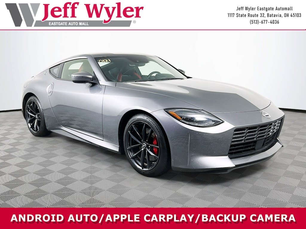 Jeff Wyler Eastgate Auto Mall is pleased to offer this charming-looking 2024 Nissan Z Performance in Gun Metallic. Well equipped with: Floor Mat Package (First Aid Kit), 4-Wheel Disc Brakes, 8 Speakers, ABS brakes, Air Conditioning, Alloy wheels, AM/FM radio: SiriusXM, Auto High-beam Headlights, Auto-dimming Rear-View mirror, Automatic temperature control, Blind Spot Warning, Brake assist, Bumpers: body-color, Compass, Delay-off headlights, Driver door bin, Driver vanity mirror, Dual front impact airbags, Dual front side impact airbags, Electronic Stability Control, Emergency communication system: NissanConnect Services, Four wheel independent suspension, Front anti-roll bar, Front Bucket Seats, Front Center Armrest, Front reading lights, Fully automatic headlights, Garage door transmitter, Heated door mirrors, Heated Front Bucket Seats, Heated front seats, Illuminated Kick Plate - Black Metallic, Interior Door Scuff Protection, Leather Shift Knob, Leather steering wheel, Leather-Appointed Seat Trim, Low tire pressure warning, Navigation system: NissanConnect with Navigation and Services, Occupant sensing airbag, Outside temperature display, Overhead airbag, Panic alarm, Passenger door bin, Passenger vanity mirror, Power door mirrors, Power driver seat, Power passenger seat, Power steering, Power windows, Radio data system, Radio: Bose Audio System w/8 Speakers, Rear anti-roll bar, Rear window defroster, Remote keyless entry, Security system, Speed control, Speed-sensing steering, Spoiler, Steering wheel mounted audio controls, Tachometer, Telescoping steering wheel, Tilt steering wheel, Traction control, Trip computer, Turn signal indicator mirrors, Variably intermittent wipers, Voltmeter, and Wheels: 19" RAYS Super-Lightweight Forged Alloy. CARFAX One-Owner. Certified. Ask about available certifications. Used vehicles 10 years of age or newer with less than 100,000 miles are eligible for the Wyler Assurance Program, but eligible vehicles must pass our reconditioning process and multi-point inspection. Provided the vehicle passes inspection, vehicles will be eligible for the 6 month/6,000 mile limited warranty. The 6 month/6,000 mile limited warranty is NOT available on AS-IS vehicles, wholesale vehicles, lease buyback/pass-thru vehicles or un-inspected vehicles. Note that this program can also apply to vehicles where the remaining factory coverage is less than 6 months or 6,000 miles. Please check the Federal Trade Commission (FTC) Buyers guide on the vehicle for full details as to whether or not warranty coverage may apply. Contact Dealer for additional details. The Wyler Assurance 6 month/6,000 Mile limited warranty ends 6 months from the date of the Retail Purchase Agreement (BUYERS ORDER) or when the vehicle's odometer registers 6,000 additional miles to the mileage listed on the BUYERS ORDER, whichever comes first. Your Deductible - The warranty holder on your contract pays the first $100 of each covered repair.
