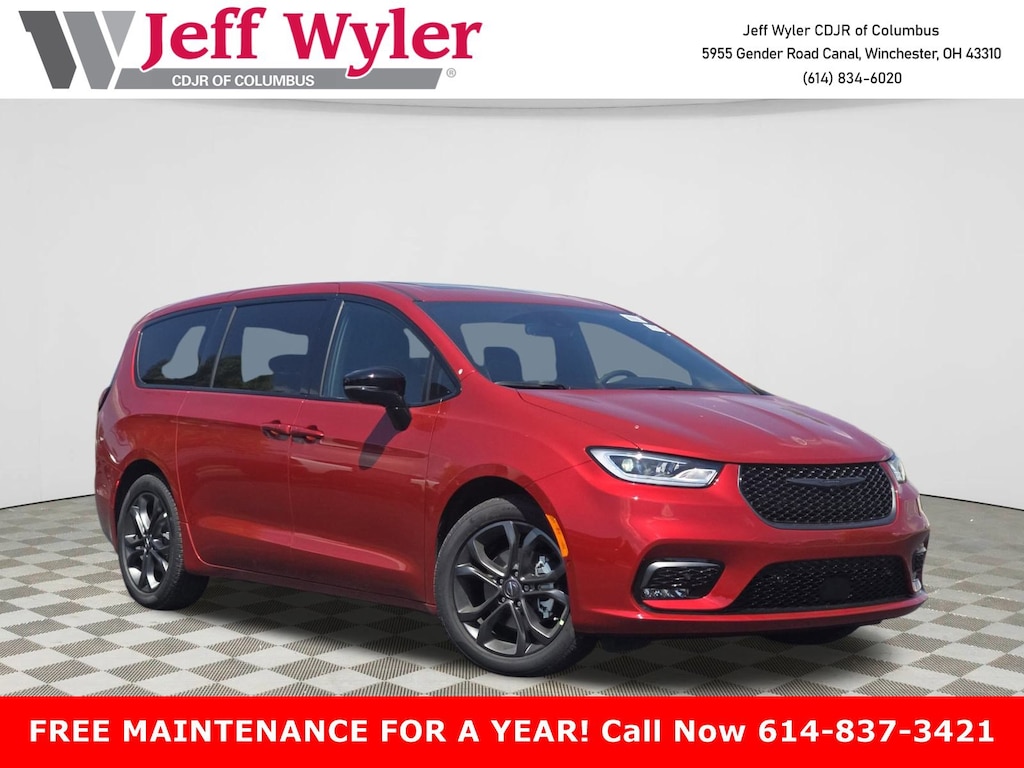 Jeff Wyler Columbus Auto Mall is proud to offer this great 2026 Chrysler Pacifica Select in Red Hot Pearlcoat. Well equipped with: 100th Anniversary Buzz Model Package (100th Anniversary Buzz Model Graphic, Black Day Light Opening Moldings, Granite Crystal Exterior Accents, Granite Crystal Exterior Badging, Premium Fascia-Upper/Lower Grilles/Granite Crystal, Premium Rear Fascia Granite Crystal, and Wheels: 20" x 7.5" Luster Gray Aluminum), Quick Order Package 27L, Safety Sphere (360 Surround View Camera System and ParkSense Front/Rear Park Assist w/Stop), 10.1" Touchscreen Display, 17" x 7.0" Aluminum Wheels, 3.25 Axle Ratio, 3rd row seats: split-bench, 4-Wheel Disc Brakes, 4G LTE Wi-Fi Hot Spot, 6 Speakers, ABS brakes, Air Conditioning, Alloy wheels, AM/FM radio: SiriusXM, Apple CarPlay, Apple CarPlay/Android Auto, Auto-dimming Rear-View mirror, Automatic temperature control, Black Seats, Brake assist, Bumpers: body-color, Caprice Leatherette Bucket Seats, Compass, Connectivity - US/Canada, Delay-off headlights, Disassociated Touchscreen Display, Driver door bin, Driver vanity mirror, Driver's Seat Mounted Armrest, Dual front impact airbags, Dual front side impact airbags, Electronic Stability Control, Emergency communication system: Chrysler Connect, For Details, Visit DriveUconnect.com, Four wheel independent suspension, Front anti-roll bar, Front Bucket Seats, Front dual zone A/C, Front fog lights, Front reading lights, Fully automatic headlights, Garage door transmitter, Google Android Auto, GPS Antenna Input, Heated door mirrors, Heated front seats, Heated steering wheel, Illuminated entry, Integrated Active Noise Cancellation, Integrated Center Stack Radio, Knee airbag, Low tire pressure warning, Memory seat, Occupant sensing airbag, Outside temperature display, Overhead airbag, Overhead console, Panic alarm, ParkView Rear Back-Up Camera, Passenger door bin, Passenger seat mounted armrest, Passenger vanity mirror, Power door mirrors, Power driver seat, Power Front/Fixed Rear Full Sunroof, Power Liftgate, Power Open/Close Shade, Power steering, Power windows, Radio data system, Radio: Uconnect 5 w/10.1" Display, Rain sensing wipers, Rear air conditioning, Rear reading lights, Rear window defroster, Rear window wiper, Reclining 3rd row seat, Remote keyless entry, Security system, Speed control, Split folding rear seat, Spoiler, Steering wheel mounted audio controls, Tachometer, Telescoping steering wheel, Tilt steering wheel, Touring Suspension, Traction control, Trip computer, Turn signal indicator mirrors, USB Host Flip, Variably intermittent wipers, and VoltmeteR. 19/28 City/Highway MPGWyler Family First Package Includes: NanoCure Appearance Protection: Exterior & Interior Chemical Sealant Applied to Protect Against Environmental Hazards (7 Year Warranty Coverage). Pulse- Rear End Collision Avoidance System Theft Deterrent Strategy gives you 5 Years of Coverage against vehicle theft, Offering up to a $5,000 benefit. Price does not include Tax, Title, License and Documentary Fee$1000 - 2026 National Retail Bonus Cash . Exp. 09/30/2025 $500 - 2026 National 2026 Military Bonus Cash . Exp. 01/05/2026