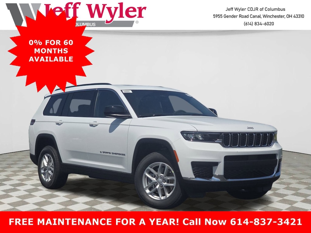 Jeff Wyler Columbus Auto Mall is delighted to offer this gorgeous 2025 Jeep Grand Cherokee L Laredo in Bright White Clearcoat. Well equipped with: Quick Order Package 23D Laredo X (Laredo X and Power Sunroof), 3.45 Rear Axle Ratio, 3rd row seats: split-bench, 4-Wheel Disc Brakes, 6 Speakers, ABS brakes, Air Conditioning, Alloy wheels, AM/FM radio: SiriusXM, Anti-whiplash front head restraints, Automatic temperature control, Brake assist, Bumpers: body-color, Cloth Seats, Compass, Delay-off headlights, Driver door bin, Driver vanity mirror, Dual front impact airbags, Dual front side impact airbags, Electronic Stability Control, Emergency communication system, Four wheel independent suspension, Front anti-roll bar, Front Bucket Seats, Front Center Armrest w/Storage, Front dual zone A/C, Front License Plate Bracket, Front reading lights, Fully automatic headlights, Heated door mirrors, Illuminated entry, Knee airbag, Low tire pressure warning, Manual Fold Seatbacks, Model Year Tracking, Normal Duty Suspension, Occupant sensing airbag, Outside temperature display, Overhead airbag, Overhead console, Panic alarm, ParkView Rear Back-Up Camera, Passenger door bin, Passenger vanity mirror, Power door mirrors, Power driver seat, Power steering, Power windows, Radio data system, Radio: Uconnect 5 w/8.4" Display, Rear air conditioning, Rear anti-roll bar, Rear reading lights, Rear window defroster, Rear window wiper, Reclining 3rd row seat, Remote keyless entry, Security system, Speed control, Speed-Sensitive Wipers, Split folding rear seat, Spoiler, Steering wheel mounted audio controls, Tachometer, Telescoping steering wheel, Tilt steering wheel, Traction control, Trip computer, Variably intermittent wipers, Voltmeter, and Wheels: 18" x 8.0" Fully Painted Aluminum.Wyler Family First Package Includes: NanoCure Appearance Protection: Exterior & Interior Chemical Sealant Applied to Protect Against Environmental Hazards (7 Year Warranty Coverage). Pulse- Rear End Collision Avoidance System Theft Deterrent Strategy gives you 5 Years of Coverage against vehicle theft, Offering up to a $5,000 benefit. Price does not include Tax, Title, License and Documentary Fee$1000 - 2025 National Grand Cherokee Loyalty Retail Bonus Cash . Exp. 09/30/2025 $2500 - 2025 National Retail Bonus Cash . Exp. 09/30/2025 $500 - 2025 National 2025 Military Bonus Cash. Exp. 01/05/2026