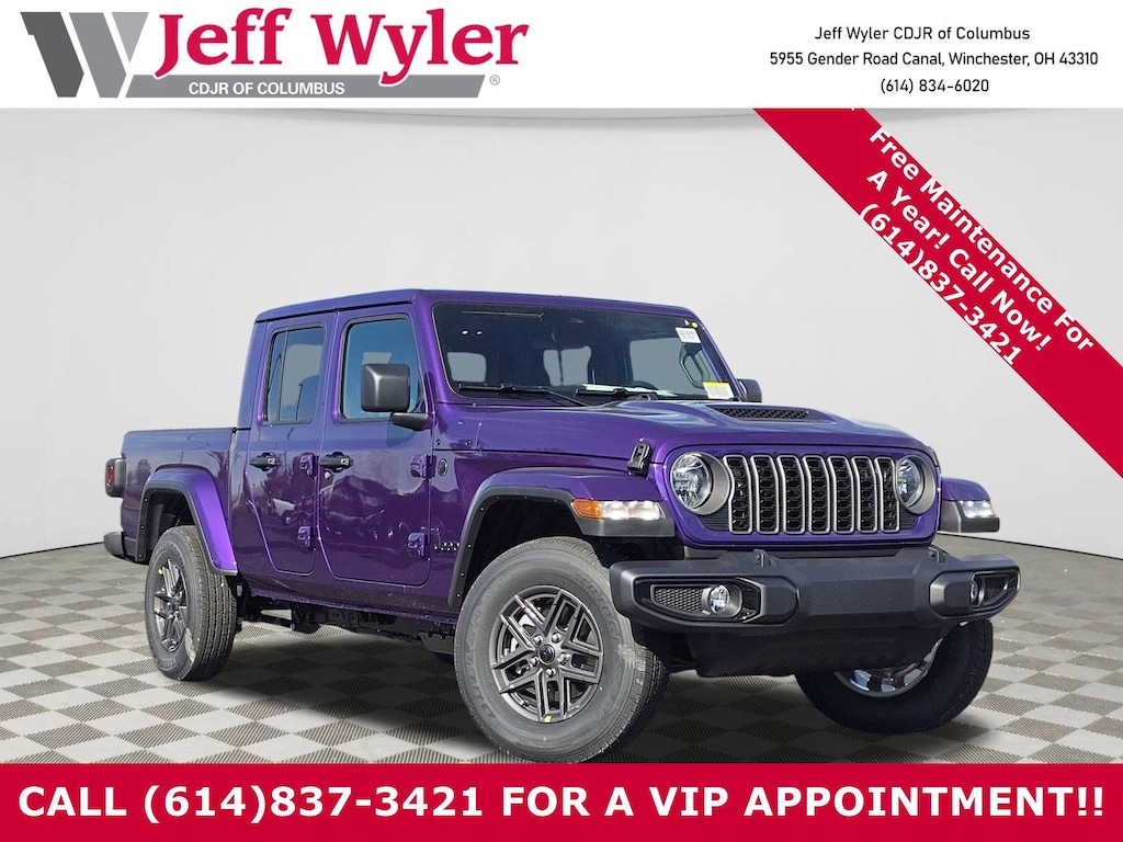 Jeff Wyler Columbus Auto Mall is proud to offer this superb-looking 2026 Jeep Gladiator Sport S in reign. Well equipped with: Convenience Group (Air Conditioning with Auto Temp Control, Cluster 7.0" TFT Color Display, Corning Gorilla Glass, Daytime Running Lamp System, Emergency/Assistance Call, Front Door Locks 2-Door Passive Entry, Heated Front Seats, Heated Steering Wheel, Remote Start System, and Universal Garage Door Opener), Dark Sky Appearance Package (2-Piece Body Color Fender Flares, Mold in Color Bumper with Gloss Black, and Performance Hood), Quick Order Package 24S Sport S (Advanced Brake Assist, Automatic Headlamps, Deep Tint Sunscreen Windows, Full Speed Forward Collision Warning Plus, Normal Duty Plus Suspension, Power Heated Mirrors, Premium Wrapped Steering Wheel, Security Alarm, Sun Visors with Illuminated Vanity Mirrors, and Wheels: 17" x 7.5" Gray), Trailer Tow and Auxiliary Switch Group (Auxiliary Switches, Class IV Receiver Hitch, Heavy-Duty Engine Cooling, and Trailer Hitch Zoom), 110 Mph Vehicle Max Speed Calibration, 12.3" Touchscreen Display, 3.73 Rear Axle Ratio, 4-Wheel Disc Brakes, 4G LTE Wi-Fi Hot Spot, 8 Speakers, ABS brakes, Air Conditioning, Alexa Built-in, AM/FM radio: SiriusXM with 360L, Apple CarPlay, Apple CarPlay/Android Auto, Body Color 3-Piece Hard Top, Brake assist, Compass, Connectivity - US/Canada, Delay-off headlights, Driver door bin, Driver vanity mirror, Dual front impact airbags, Dual front side impact airbags, Electronic Stability Control, Freedom Panel Storage Bag, Front anti-roll bar, Front Bucket Seats, Front Center Armrest w/Storage, Front fog lights, Front License Plate Bracket, Front reading lights, Google Android Auto, Illuminated entry, Integrated roll-over protection, Low tire pressure warning, MOPAR All-Weather Slush Mats, MyFlexCare Service Plan, Normal Duty Suspension, Occupant sensing airbag, Outside temperature display, Overhead airbag, Panic alarm, ParkView Rear Back-Up Camera, Passenger door bin, Passenger vanity mirror, Power steering, Power windows, Radio data system, Radio: Uconnect 5 with 12.3" Display, Rear anti-roll bar, Rear reading lights, Rear Sliding Window, Rear Window Defroster, Remote keyless entry, Speed control, Split folding rear seat, Steering wheel mounted audio controls, Tachometer, Telescoping steering wheel, Tilt steering wheel, Traction control, Trip computer, USB Host Flip, Variably intermittent wipers, Voltmeter, and Wheels: 17" x 7.5" Black Steel Styled.Wyler Family First Package Includes: NanoCure Appearance Protection: Exterior & Interior Chemical Sealant Applied to Protect Against Environmental Hazards (7 Year Warranty Coverage). Pulse- Rear End Collision Avoidance System Theft Deterrent Strategy gives you 5 Years of Coverage against vehicle theft, Offering up to a $5,000 benefit. Price does not include Tax, Title, License and Documentary Fee$1500 - 2026 National Select Inventory Bonus Cash. Exp. 01/05/2026 $1500 - 2026 National Stellantis Loyalty Retail Bonus Cash . Exp. 01/05/2026 $2000 - 2026 National Holiday Select Inventory Bonus Cash. Exp. 01/05/2026 $500 - 2026 National 2026 Military Bonus Cash . Exp. 01/05/2026