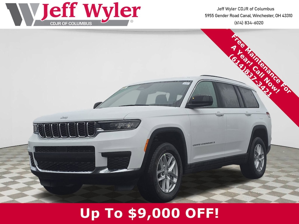 Jeff Wyler Columbus Auto Mall is excited to offer this attractive-looking 2026 Jeep Grand Cherokee L Laredo in Bright White Clearcoat. Well equipped with: Quick Order Package 22J Laredo X (115V Auxiliary Power Outlet, 3rd Row Charge-Only USB Ports, Heated Front Seats, Heated Steering Wheel, Power Liftgate, Power Sunroof, Rain Sensitive Windshield Wipers, Remote Start System, Selectable Tire Fill Alert, and Wireless Charging Pad), 3.45 Rear Axle Ratio, 3rd row seats: split-bench, 4-Wheel Disc Brakes, 4G LTE Wi-Fi Hot Spot, 6 Speakers, ABS brakes, Air Conditioning, Alloy wheels, AM/FM radio: SiriusXM, Anti-whiplash front head restraints, Apple CarPlay, AppLink/Apple CarPlay and Android Auto, Automatic temperature control, Brake assist, Bumpers: body-color, Cloth Seats, Compass, Connectivity - US/Canada, Delay-off headlights, Disassociated Touchscreen Display, Driver door bin, Driver vanity mirror, Dual front impact airbags, Dual front side impact airbags, Electronic Stability Control, Emergency communication system, For Details, Visit DriveUconnect.com, Four wheel independent suspension, Front anti-roll bar, Front Bucket Seats, Front Center Armrest w/Storage, Front dual zone A/C, Front License Plate Bracket, Front reading lights, Fully automatic headlights, Global Telematics Box Module (TBM), Gloss Black Exterior Mirrors, Google Android Auto, GPS Antenna Input, Heated door mirrors, Heated Exterior Mirrors, Illuminated entry, Integrated Center Stack Radio, Integrated Voice Command with Bluetooth, Knee airbag, Low tire pressure warning, Manual Fold Seatbacks, Manual Folding Exterior Mirrors, MyFlexCare Service Plan, Normal Duty Suspension, Occupant sensing airbag, Outside temperature display, Overhead airbag, Overhead console, Panic alarm, ParkView Rear Back-Up Camera, Passenger door bin, Passenger vanity mirror, Power door mirrors, Power driver seat, Power Fold Seatbacks, Power steering, Power windows, Radio data system, Radio: Uconnect 5 with 8.4" Display, Rear air conditioning, Rear anti-roll bar, Rear reading lights, Rear window defroster, Rear window wiper, Reclining 3rd row seat, Remote keyless entry, Security system, Speed control, Speed-Sensitive Wipers, Split folding rear seat, Spoiler, Steering wheel mounted audio controls, Tachometer, Telescoping steering wheel, Tilt steering wheel, Traction control, Trip computer, USB Host Flip, Variably intermittent wipers, Voltmeter, and Wheels: 18" x 8.0" Fully Painted AluminuM.Wyler Family First Package Includes: NanoCure Appearance Protection: Exterior & Interior Chemical Sealant Applied to Protect Against Environmental Hazards (7 Year Warranty Coverage). Pulse- Rear End Collision Avoidance System Theft Deterrent Strategy gives you 5 Years of Coverage against vehicle theft, Offering up to a $5,000 benefit. Price does not include Tax, Title, License and Documentary Fee$2000 Stellantis Financial Bonus Cash. Must finance through SFS to receive discount.
