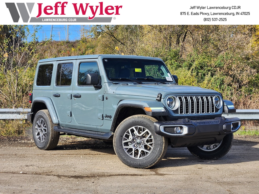 Jeff Wyler Chrysler Dodge Jeep of Lawrenceburg is pumped up to offer this outstanding-looking and fun 2026 Jeep Wrangler Sahara in Anvil Clear Coat. Well equipped with: Dual Top Group (Body Color 3-Piece Hard Top, Freedom Panel Storage Bag, Premium Black Sunrider Soft Top w/Dual Top Group, Rear Window Defroster, and Rear Window Wiper/Washer), Quick Order Package 22G, Sahara Popular Equipment Group (12.3" Touchscreen Display, 4G LTE Wi-Fi Hot Spot, Alpine Premium Audio System, Apple CarPlay, Auto High Beam Headlamp Control, Auto-Dimming Rear-View Mirror, Blind Spot & Cross Path Detection, Connected Travel & Traffic Services, Connectivity - US/Canada, Disassociated Touchscreen Display, For More Info, Call 800-643-2112, Google Android Auto, GPS Navigation, Hard Seat Back, HD Radio, Integrated Center Stack Radio, Integrated Off-Road Camera, Integrated Voice Command w/Bluetooth, Leather Wrapped Park Brake Handle, Leather Wrapped Shift Knob, McKinley Trimmed Seats, ParkSense Rear Park Assist System, Power 4-Way Driver Lumbar Adjust, Power 4-Way Passenger Lumbar Adjust, Power Adjust 8-Way Driver Seat, Power Adjust 8-Way Front Passenger Seat, Radio: Uconnect 5 Nav w/12.3" Display, Side Steps, SiriusXM Radio Service, SiriusXM w/360L, and Universal Garage Door Opener), 3.45 Overall Top Gear Ratio, 4-Wheel Disc Brakes, 8 Speakers, ABS brakes, Air Conditioning, Alloy wheels, AM/FM radio: SiriusXM with 360L, Apple CarPlay/Android Auto, Automatic temperature control, Aux Battery, Brake assist, Cloth Low-Back Bucket Seats, Compass, Delay-off headlights, Driver door bin, Driver vanity mirror, Dual front impact airbags, Dual front side impact airbags, Electronic Stability Control, Emergency communication system: Jeep Connect, Front anti-roll bar, Front Bucket Seats, Front Center Armrest w/Storage, Front dual zone A/C, Front fog lights, Front reading lights, Fully automatic headlights, Heated door mirrors, Heated front seats, Heated steering wheel, Heavy Duty Suspension w/Gas Shocks, Illuminated entry, Integrated roll-over protection, Low tire pressure warning, MOPAR All-Weather Floor Mats, Non-Lock Fuel Cap w/o Discriminator, Occupant sensing airbag, Outside temperature display, Overhead airbag, Panic alarm, ParkView Rear Back-Up Camera, Passenger door bin, Passenger vanity mirror, Power door mirrors, Power steering, Power windows, Radio data system, Radio: Uconnect 5 w/12.3" Display, Rear anti-roll bar, Rear reading lights, Remote keyless entry, Security system, Speed control, Split folding rear seat, Steering wheel mounted audio controls, Stop-Start Dual Battery System, Tachometer, Telescoping steering wheel, Tilt steering wheel, Traction control, Trip computer, Variably intermittent wipers, Voltmeter, and Wheels: 18" x 7.5" Machine/Painted Gray.Wyler Family First Package Includes: NanoCure Appearance Protection: Exterior & Interior Chemical Sealant Applied to Protect Against Environmental Hazards (7 Year Warranty Coverage). Pulse- Rear end Collision Avoidance System Theft Deterrent Strategy gives you 5 Years of Coverage against vehicle Theft, Offering up to a $5,000 benefit. Used vehicles 10 years of age or newer with less than 100,000 miles are eligible for the Wyler Assurance Program, but eligible vehicles must pass our reconditioning process and multi-point inspection. Provided the vehicle passes inspection, vehicles will be eligible for the 6 month/6,000 mile limited warranty. The 6 month/6,000 mile limited warranty is NOT available on AS-IS vehicles, wholesale vehicles, lease buyback/pass-thru vehicles or un-inspected vehicles. Note that this program can also apply to vehicles where the remaining factory coverage is less than 6 months or 6,000 miles. Please check the Federal Trade Commission (FTC) Buyers guide on the vehicle for full details as to whether or not warranty coverage may apply. Contact Dealer for additional details.The Wyler Assurance 6 month/6,000 Mile limited warranty ends 6 months from the date of the Retail Purc