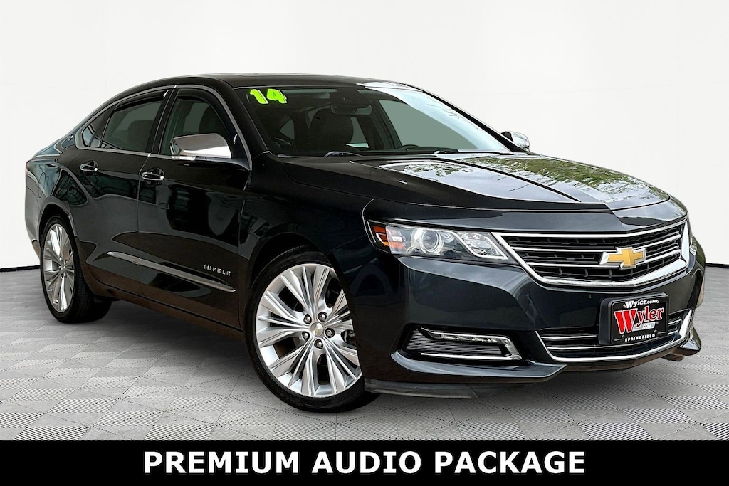 Jeff Wyler Springfield Auto Mall is excited to offer this fantastic 2014 Chevrolet Impala LTZ in Ashen Gray Metallic. Well equipped with: Comfort & Convenience Package (Auto-Dimming Inside Rear-View Mirror, Carpeted Trunk Mat, Driver Memory, Heated Steering Wheel, Outside Heated Power-Adjustable Mirrors, Power Tilt & Telescoping Steering Column, Premium Carpeted Front & Rear Floor Mats, Universal Home Remote, Ventilated Driver Seat, and Ventilated Front Passenger Seat), Preferred Equipment Group 2LZ (Power Tilt-Sliding Sunroof), Premium Audio Package (120-Volt Power Outlet and Bose Centerpoint Surround Sound w/11-Speakers), 100-Watt 6-Speaker System, 3 USB Ports, 4-Wheel Disc Brakes, 6 Speakers, 8-Way Power Driver Seat Adjuster, 8-Way Power Front Passenger Seat Adjuster, 8" Diagonal Color Infotainment Display, ABS brakes, Air Conditioning, Alloy wheels, AM/FM radio: SiriusXM, Automatic temperature control, Bodyside moldings, Brake assist, Bumpers: body-color, CD player, Compass, Delay-off headlights, Driver 4-Way Power Lumbar Seat Adjuster, Driver door bin, Driver vanity mirror, Dual front impact airbags, Dual front side impact airbags, Electronic Stability Control, Emergency communication system: OnStar Directions & Connections, Exterior Parking Camera Rear, Four wheel independent suspension, Front anti-roll bar, Front Bucket Seats, Front Center Armrest, Front dual zone A/C, Front Passenger 4-Way Power Lumbar Seat Adjuster, Front reading lights, Fully automatic headlights, Heated door mirrors, Heated front seats, High-Intensity Discharge Headlights, Illuminated entry, Knee airbag, Leather Shift Knob, Leather-Appointed Seat Trim, Low tire pressure warning, Occupant sensing airbag, Overhead airbag, Overhead console, Panic alarm, Passenger door bin, Passenger vanity mirror, Power door mirrors, Power driver seat, Power moonroof, Power passenger seat, Power steering, Power windows, Premium All-Weather Cargo Mat (LPO) (DISC), Premium audio system: Chevrolet MyLink, Radio data system, Radio: Chevrolet MyLink AM/FM Stereo w/CD & NAV, Radio: Chevrolet MyLink AM/FM Stereo w/CD Player, Rear anti-roll bar, Rear reading lights, Rear seat center armrest, Rear side impact airbag, Rear Spoiler, Rear window defroster, Remote keyless entry, SD Card Receptacle, Security system, SiriusXM & HD Radio, Speed control, Speed-sensing steering, Split folding rear seat, Steering wheel mounted audio controls, Tachometer, Telescoping steering wheel, Tilt steering wheel, Traction control, Trip computer, Turn signal indicator mirrors, Variably intermittent wipers, Wheels: 19" Machined-Face Aluminum, and Wheels: 20" Aluminum. Awards: * 2014 KBB.com 12 Best Family Cars * 2014 KBB.com 10 Best Used Family Cars Under $15,000 * 2014 KBB.com 5-Year Cost to Own Awards * 2014 KBB.com Brand Image Awards * 2014 KBB.com 10 Most Comfortable Cars Under $30,000 Reviews: * Bold new style; excellent highway ride; refined interior; ample convenience features and safety technology; plenty of rear-seat room. Source: Edmunds * If youâre looking for a sizable sedan that offers sizable value, the 2014 Chevrolet Impala is perfectly capable of capturing your attention. Source: KBB.comAsk about available certifications. Used vehicles 10 years of age or newer with less than 100,000 miles are eligible for the Wyler Assurance Program, but eligible vehicles must pass our reconditioning process and multi-point inspection. Provided the vehicle passes inspection, vehicles will be eligible for the 6 month/6,000 mile limited warranty. The 6 month/6,000 mile limited warranty is NOT available on AS-IS vehicles, wholesale vehicles, lease buyback/pass-thru vehicles or un-inspected vehicles. Note that this program can also apply to vehicles where the remaining factory coverage is less than 6 months or 6,000 miles. Please check the Federal Trade Commission (FTC) Buyers guide on the vehicle for full details as to whether or not warranty coverage may apply. Contact Dealer for additi