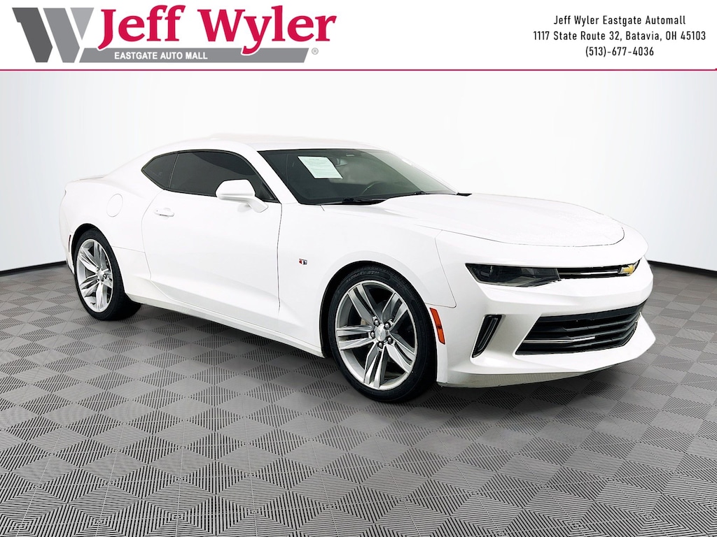Jeff Wyler Eastgate Auto Mall is delighted to offer this beautiful 2017 Chevrolet Camaro 1LT in Summit White. Well equipped with: RS Package (Decklid Mounted Lip Spoiler, High-Intensity Discharge Headlamps, and Wheels: 20" 5-Split Spoke Machined-Face Aluminum), Technology Package (Bose Premium 9-Speaker Audio System Feature, Radio: Chevrolet MyLink Audio System, and SiriusXM Satellite Radio), 18" Silver-Painted Aluminum Wheels, 2 USB Ports & Auxiliary Input Jack, 4-Wheel Disc Brakes, 6 Speakers, 6-Speaker Audio System Feature, ABS brakes, Air Conditioning, Alloy wheels, AM/FM radio: SiriusXM, Apple CarPlay/Android Auto, Automatic temperature control, Brake assist, Bumpers: body-color, Cargo Net, Cloth Seat Trim, Compass, Delay-off headlights, Driver door bin, Driver vanity mirror, Dual front impact airbags, Dual front side impact airbags, Electronic Stability Control, Emergency communication system, Exterior Parking Camera Rear, Four wheel independent suspension, Front anti-roll bar, Front Bucket Seats, Front Center Armrest, Front fog lights, Front License Plate Bracket, Front reading lights, Front Sport Bucket Seats, Fully automatic headlights, Illuminated entry, Knee airbag, Leather Shift Knob, Low tire pressure warning, Occupant sensing airbag, Overhead airbag, Panic alarm, Passenger door bin, Passenger vanity mirror, Power door mirrors, Power driver seat, Power passenger seat, Power steering, Power windows, Premium audio system: Chevrolet MyLink, Radio data system, Radio: AM/FM w/Chevrolet MyLink, Rear anti-roll bar, Rear window defroster, Remote keyless entry, Security system, Speed control, Speed-sensing steering, Steering wheel mounted audio controls, Tachometer, Telescoping steering wheel, Tilt steering wheel, Tire Inflation Kit, Traction control, Trip computer, Variably intermittent wipers, Voltmeter, Wheel Locks, and Wheels: 20" 5-Split Spoke Aluminum. CARFAX One-Owner. Reviews: * Surprisingly sharp and nimble handling around turns, with lots of grip; appealing lineup of engines, including a strong V6 and a powerful V8, that provide class-leading acceleration; smooth ride quality on the highway and in town; good value, with lots of standard equipment. Source: EdmundsAwards: * Car and Driver 10 Best Cars * 2017 KBB.com 10 Coolest Cars Under $25,000 * 2017 KBB.com 10 Most Awarded BrandsCar and Driver, January 2017. Ask about available certifications. Used vehicles 10 years of age or newer with less than 100,000 miles are eligible for the Wyler Assurance Program, but eligible vehicles must pass our reconditioning process and multi-point inspection. Provided the vehicle passes inspection, vehicles will be eligible for the 6 month/6,000 mile limited warranty. The 6 month/6,000 mile limited warranty is NOT available on AS-IS vehicles, wholesale vehicles, lease buyback/pass-thru vehicles or un-inspected vehicles. Note that this program can also apply to vehicles where the remaining factory coverage is less than 6 months or 6,000 miles. Please check the Federal Trade Commission (FTC) Buyers guide on the vehicle for full details as to whether or not warranty coverage may apply. Contact Dealer for additional details. The Wyler Assurance 6 month/6,000 Mile limited warranty ends 6 months from the date of the Retail Purchase Agreement (BUYERS ORDER) or when the vehicle's odometer registers 6,000 additional miles to the mileage listed on the BUYERS ORDER, whichever comes first. Your Deductible - The warranty holder on your contract pays the first $100 of each covered repair.