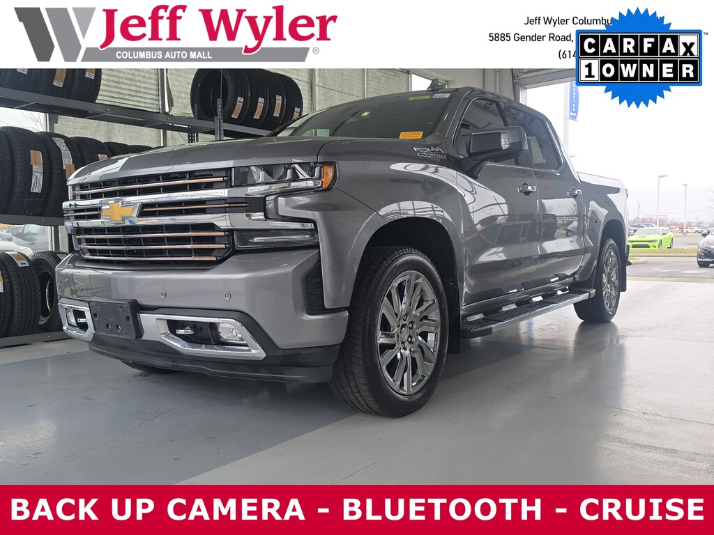 2019 Chevrolet Silverado 1500 Satin Steel Metallic EcoTec3 5.3L V8 8-Speed Automatic High Country 4WD 8-Speed Automatic, 4WD, Jet Black Leather. CARFAX One-Owner. Clean CARFAX.Odometer is 9378 miles below market average!Come visit the all new Jeff Wyler Chevrolet of Columbus the official Home of the Fresh Start Program! See how easy it is drive your new vehicle home today.
