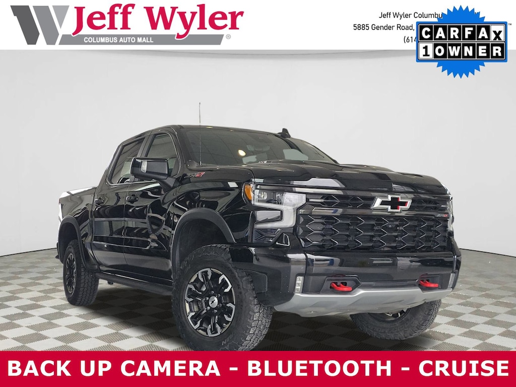 2022 Chevrolet Silverado 1500 Black EcoTec3 6.2L V8 10-Speed Automatic ZR2 4WD Priced below KBB Fair Purchase Price! 10-Speed Automatic, 4WD, Jet Black/Graystone Leather. CARFAX One-Owner. Clean CARFAX.Come visit the all new Jeff Wyler Chevrolet of Columbus the official Home of the Fresh Start Program! See how easy it is drive your new vehicle home today.