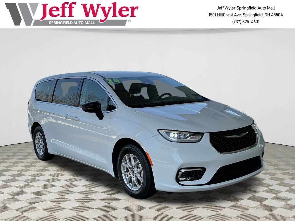 Jeff Wyler Springfield Auto Mall is delighted to offer this good-looking 2024 Chrysler Pacifica Touring L in Bright White Clearcoat. Well equipped with: Quick Order Package 27L, 10.1" Touchscreen Display, 17" x 7.0" Aluminum Wheels, 3.25 Axle Ratio, 3rd row seats: split-bench, 4-Wheel Disc Brakes, 6 Speakers, ABS brakes, Air Conditioning, Alloy wheels, AM/FM radio: SiriusXM, Apple CarPlay, Apple CarPlay/Android Auto, Automatic temperature control, Black Seats, Brake assist, Bumpers: body-color, Caprice Leatherette Bucket Seats, Compass, Delay-off headlights, Disassociated Touchscreen Display, Driver door bin, Driver vanity mirror, Driver's Seat Mounted Armrest, Dual front impact airbags, Dual front side impact airbags, Electronic Stability Control, Four wheel independent suspension, Front anti-roll bar, Front Bucket Seats, Front dual zone A/C, Front fog lights, Front reading lights, Fully automatic headlights, Google Android Auto, GPS Antenna Input, Heated door mirrors, Heated front seats, Heated steering wheel, Illuminated entry, Integrated Active Noise Cancellation, Integrated Center Stack Radio, Knee airbag, Low tire pressure warning, Manufacturer's Statement of Origin, Memory seat, Occupant sensing airbag, Outside temperature display, Overhead airbag, Overhead console, Panic alarm, ParkView Rear Back-Up Camera, Passenger door bin, Passenger seat mounted armrest, Passenger vanity mirror, Power door mirrors, Power driver seat, Power Liftgate, Power steering, Power windows, Radio data system, Radio: Uconnect 5 w/10.1" Display, Rain sensing wipers, Rear air conditioning, Rear reading lights, Rear window defroster, Rear window wiper, Reclining 3rd row seat, Remote keyless entry, Security system, Speed control, Split folding rear seat, Spoiler, Steering wheel mounted audio controls, Tachometer, Telescoping steering wheel, Tilt steering wheel, Touring Suspension, Traction control, Trip computer, Turn signal indicator mirrors, USB Host Flip, Variably intermittent wipers, and Voltmeter. Ask about available certifications. Used vehicles 10 years of age or newer with less than 100,000 miles are eligible for the Wyler Assurance Program, but eligible vehicles must pass our reconditioning process and multi-point inspection. Provided the vehicle passes inspection, vehicles will be eligible for the 6 month/6,000 mile limited warranty. The 6 month/6,000 mile limited warranty is NOT available on AS-IS vehicles, wholesale vehicles, lease buyback/pass-thru vehicles or un-inspected vehicles. Note that this program can also apply to vehicles where the remaining factory coverage is less than 6 months or 6,000 miles. Please check the Federal Trade Commission (FTC) Buyers guide on the vehicle for full details as to whether or not warranty coverage may apply. Contact Dealer for additional details. The Wyler Assurance 6 month/6,000 Mile limited warranty ends 6 months from the date of the Retail Purchase Agreement (BUYERS ORDER) or when the vehicle's odometer registers 6,000 additional miles to the mileage listed on the BUYERS ORDER, whichever comes first. Your Deductible - The warranty holder on your contract pays the first $100 of each covered repair.