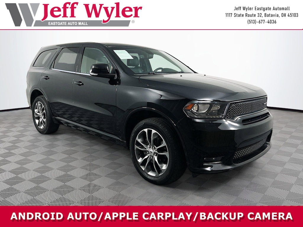 Jeff Wyler Eastgate Auto Mall is very proud to offer this fantastic-looking 2020 Dodge Durango GT Plus in DB Black Crystal Clearcoat. Well equipped with: Quick Order Package 2BE GT Plus (115V Auxiliary Power Outlet, 180 Amp Alternator, Auto-Dimming Exterior Driver Mirror, Bright Cargo Area Scuff Pads, Bright Front Door Sill Scuff Pads, Dual Remote USB Port - Charge Only, Exterior Mirrors w/Memory, Exterior Mirrors w/Supplemental Signals, Heated Front Seats, Heated Second Row Seats, Heated Steering Wheel, Leather Suede Bucket Seats, Power 6x9 Multi-Function Foldaway Mirrors, Power 8-Way Driver Memory 6-Way Passenger Seats, Power Driver/Passenger 4-Way Lumbar Adjust, Power Liftgate, Radio/Driver Seat/Mirrors Memory, Remote Start System, Security Alarm, and Sun Visors w/Illuminated Vanity Mirrors), 1-Year SiriusXM Guardian Trial, 2nd Row Fold/Tumble Captain Chairs, 2nd Row Mini Console w/Cupholders, 2nd Row Seat Mounted Inboard Armrests, 3.45 Rear Axle Ratio, 3rd Row Floor Mat & Mini Console, 3rd row seats: split-bench, 4-Wheel Disc Brakes, 4G LTE Wi-Fi Hot Spot, 5-Year SiriusXM Traffic Service, 5-Year SiriusXM Travel Link Service, 6 Speakers, 6-Passenger Seating, 8.4" Touchscreen Display, ABS brakes, Air Conditioning, Alloy wheels, AM/FM radio: SiriusXM, Anti-whiplash front head restraints, Apple CarPlay, Apple CarPlay/Android Auto, Auto-dimming Rear-View mirror, Automatic temperature control, Blind Spot & Cross Path Detection, Brake assist, Bumpers: body-color, Cloth Low-Back Bucket Seats, Compass, Delay-off headlights, Driver door bin, Driver vanity mirror, Dual front impact airbags, Dual front side impact airbags, Electronic Stability Control, Emergency communication system: Roadside Assistance/9-1-1 Call, For Details Visit DriveUconnect.com, Four wheel independent suspension, Front anti-roll bar, Front Bucket Seats, Front Center Armrest w/Storage, Front dual zone A/C, Front fog lights, Front License Plate Bracket, Front reading lights, Fully automatic headlights, Google Android Auto, GPS Antenna Input, GPS Navigation, HD Radio, Heated door mirrors, Illuminated entry, Integrated Center Stack Radio, Integrated Voice Command w/Bluetooth, Knee airbag, Leather steering wheel, Low tire pressure warning, Occupant sensing airbag, Outside temperature display, Overhead airbag, Overhead console, Panic alarm, ParkView Rear Back-Up Camera, Passenger door bin, Passenger vanity mirror, Power door mirrors, Power driver seat, Power steering, Power windows, Radio: Uconnect 4 w/7" Display, Radio: Uconnect 4C Nav w/8.4" Display, Rear air conditioning, Rear anti-roll bar, Rear reading lights, Rear seat center armrest, Rear window defroster, Rear window wiper, Remote keyless entry, SiriusXM Satellite Radio, SiriusXM Traffic Plus, SiriusXM Travel Link, Speed control, Speed-Sensitive Wipers, Split folding rear seat, Spoiler, Steering wheel mounted audio controls, Tachometer, Telescoping steering wheel, Tilt steering wheel, Traction control, Trip computer, USB Host Flip, Variably intermittent wipers, and Wheels: 20" x 8.0" Satin Carbon - Design 1. CARFAX One-Owner. Clean CARFAX. Ask about available certifications. Used vehicles 10 years of age or newer with less than 100,000 miles are eligible for the Wyler Assurance Program, but eligible vehicles must pass our reconditioning process and multi-point inspection. Provided the vehicle passes inspection, vehicles will be eligible for the 6 month/6,000 mile limited warranty. The 6 month/6,000 mile limited warranty is NOT available on AS-IS vehicles, wholesale vehicles, lease buyback/pass-thru vehicles or un-inspected vehicles. Note that this program can also apply to vehicles where the remaining factory coverage is less than 6 months or 6,000 miles. Please check the Federal Trade Commission (FTC) Buyers guide on the vehicle for full details as to whether or not warranty coverage may apply. Contact Dealer for additional details. The Wyler Assurance 6 month/6,000 Mile limited warranty ends 6 months from th