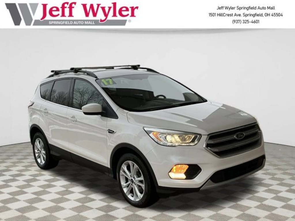 Jeff Wyler Springfield Auto Mall is delighted to offer this great-looking 2017 Ford Escape SE in White Platinum Clearcoat Metallic. Well equipped with: Equipment Group 201A, SE Leather Comfort Package (10-Way Power Passenger Seat, BLIS w/Cross Traffic Alert, Heated Leather-Trimmed Buckets w/60/40 Rear Seat, and Leather Steering Wheel & Shift Knob), SE Technology Package (110V/150W AC Power Outlet, 9 Speakers, Black Roof-Rack Side Rails, Halogen Projector Headlamps, One-Touch-Up/Down Front & Rear Windows, Reverse Sensing System, SYNC 3 Communications & Entertainment System, and SYNC Connect), 3.21 Axle Ratio, 4-Wheel Disc Brakes, 6 Speakers, ABS brakes, Air Conditioning, Alloy wheels, AM/FM radio: SiriusXM, Automatic temperature control, Brake assist, Bumpers: body-color, CD player, Compass, Delay-off headlights, Driver door bin, Driver vanity mirror, Dual front impact airbags, Dual front side impact airbags, Electronic Stability Control, Emergency communication system: 911 Assist, Exterior Parking Camera Rear, Four wheel independent suspension, Front anti-roll bar, Front Bucket Seats, Front Center Armrest, Front dual zone A/C, Front fog lights, Front reading lights, Fully automatic headlights, Illuminated entry, Knee airbag, Low tire pressure warning, Occupant sensing airbag, Outside temperature display, Overhead airbag, Overhead console, Panic alarm, Passenger door bin, Passenger vanity mirror, Power door mirrors, Power driver seat, Power Heated Sideview Mirrors, Power Liftgate, Power steering, Power windows, Radio data system, Radio: AM/FM Single CD/MP3, Rear anti-roll bar, Rear seat center armrest, Rear window defroster, Rear window wiper, Remote keyless entry, Speed control, Speed-sensing steering, Split folding rear seat, Steering wheel mounted audio controls, SYNC Communications & Entertainment System, Tachometer, Telescoping steering wheel, Tilt steering wheel, Traction control, Trip computer, Unique Cloth Buckets w/60/40 Split Rear Seat, Variably intermittent wipers, and Wheels: 17 Sparkle Silver Painted Aluminum. Awards:* 2017 KBB.com 10 Best Used Compact SUVs Under $15,000 * 2017 KBB.com 10 Best SUVs Under $25,000 * 2017 KBB.com 10 Most Awarded Brands * 2017 KBB.com Brand Image Awards Reviews:* Optional 2.0-liter turbocharged engine provides quick acceleration; high-tech features include Sync 3 infotainment, Apple CarPlay and Android Auto; responsive steering and carlike handling around turns. Source: EdmundsAsk about available certifications. Used vehicles 10 years of age or newer with less than 100,000 miles are eligible for the Wyler Assurance Program, but eligible vehicles must pass our reconditioning process and multi-point inspection. Provided the vehicle passes inspection, vehicles will be eligible for the 6 month/6,000 mile limited warranty. The 6 month/6,000 mile limited warranty is NOT available on AS-IS vehicles, wholesale vehicles, lease buyback/pass-thru vehicles or un-inspected vehicles. Note that this program can also apply to vehicles where the remaining factory coverage is less than 6 months or 6,000 miles. Please check the Federal Trade Commission (FTC) Buyers guide on the vehicle for full details as to whether or not warranty coverage may apply. Contact Dealer for additional details. The Wyler Assurance 6 month/6,000 Mile limited warranty ends 6 months from the date of the Retail Purchase Agreement (BUYERS ORDER) or when the vehicle's odometer registers 6,000 additional miles to the mileage listed on the BUYERS ORDER, whichever comes first. Your Deductible - The warranty holder on your contract pays the first $100 of each covered repair.