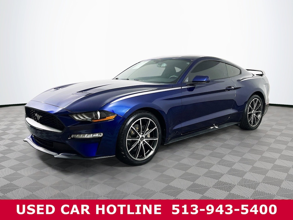 Jeff Wyler Eastgate Auto Mall is delighted to offer this terrific 2018 Ford Mustang EcoBoost in Kona Blue. Well equipped with: Equipment Group 101A (AM/FM Stereo w/Single CD/MP3 Player, Body-Color Blade Decklid Spoiler, Cloth Bucket Seats, Dual-Zone Automatic Temperature Control, Reverse Sensing System, SiriusXM Radio, and Wheels: 18" x 8" Machined-Face Aluminum), Wheel & Stripe Package (Side Stripe and Wheels: 19" x 8.5" Machined-Face Aluminum), 4-Wheel Disc Brakes, 6 Speakers, ABS brakes, Air Conditioning, Alloy wheels, AM/FM radio, AM/FM Stereo w/Single CD Player, Auto-dimming Rear-View mirror, Brake assist, Bumpers: body-color, CD player, Compass, Delay-off headlights, Driver door bin, Driver vanity mirror, Dual front impact airbags, Dual front side impact airbags, Electronic Stability Control, Emergency communication system: 911 Assist, Exterior Parking Camera Rear, Four wheel independent suspension, Front anti-roll bar, Front Bucket Seats, Front Center Armrest, Front reading lights, Fully automatic headlights, Illuminated entry, Knee airbag, Leather Shift Knob, Low tire pressure warning, Occupant sensing airbag, Outside temperature display, Overhead airbag, Overhead console, Panic alarm, Passenger door bin, Passenger vanity mirror, Power door mirrors, Power steering, Power windows, Premium Floor Liners Front & Rear, Radio data system, Rear anti-roll bar, Rear window defroster, Remote keyless entry, Security system, Silver Tape Stripe, Speed control, Speed-sensing steering, Speed-Sensitive Wipers, Split folding rear seat, Steering wheel mounted audio controls, SYNC Communications & Entertainment System, Tachometer, Telescoping steering wheel, Tilt steering wheel, Traction control, Trip computer, Variably intermittent wipers, Voltmeter, and Wheels: 17" Sparkle Silver-Painted Aluminum. Awards: * 2018 KBB.com 10 Coolest Cars Under $25,000 * 2018 KBB.com Brand Image Awards * 2018 KBB.com 10 Most Awarded Brands Ask about available certifications. Used vehicles 10 years of age or newer with less than 100,000 miles are eligible for the Wyler Assurance Program, but eligible vehicles must pass our reconditioning process and multi-point inspection. Provided the vehicle passes inspection, vehicles will be eligible for the 6 month/6,000 mile limited warranty. The 6 month/6,000 mile limited warranty is NOT available on AS-IS vehicles, wholesale vehicles, lease buyback/pass-thru vehicles or un-inspected vehicles. Note that this program can also apply to vehicles where the remaining factory coverage is less than 6 months or 6,000 miles. Please check the Federal Trade Commission (FTC) Buyers guide on the vehicle for full details as to whether or not warranty coverage may apply. Contact Dealer for additional details. The Wyler Assurance 6 month/6,000 Mile limited warranty ends 6 months from the date of the Retail Purchase Agreement (BUYERS ORDER) or when the vehicle's odometer registers 6,000 additional miles to the mileage listed on the BUYERS ORDER, whichever comes first. Your Deductible - The warranty holder on your contract pays the first $100 of each covered repair.