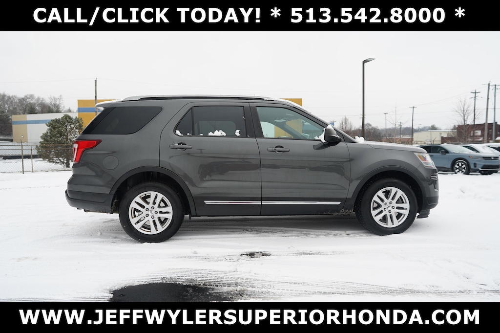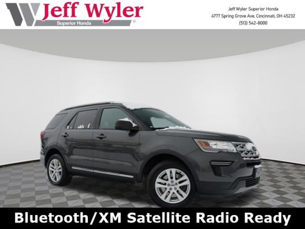 Jeff Wyler Superior Honda is excited to offer this outstanding-looking 2019 Ford Explorer XLT in Magnetic. Equipment Group 200A, Explorer XLT, 4D Sport Utility, 3.5L 6-Cylinder SMPI DOHC, 6-Speed Automatic with Select-Shift, FWD, Magnetic, Black Cloth, 3.39 Non-Limited-Slip Axle Ratio, 3rd row seats: split-bench, 4-Wheel Disc Brakes, 6 Speakers, ABS brakes, Air Conditioning, Alloy wheels, AM/FM radio: SiriusXM, AM/FM Stereo, Brake assist, Bumpers: body-color, Compass, Delay-off headlights, Driver door bin, Driver vanity mirror, Dual front impact airbags, Dual front side impact airbags, Electronic Stability Control, Emergency communication system: 911 Assist, Exterior Parking Cameras, Four wheel independent suspension, Front anti-roll bar, Front Bucket Seats, Front Center Armrest, Front License Plate Bracket, Front reading lights, Fully automatic headlights, Heated door mirrors, Illuminated entry, Knee airbag, Leather steering wheel, Low tire pressure warning, Occupant sensing airbag, Outside temperature display, Overhead airbag, Overhead console, Panic alarm, Passenger door bin, Passenger vanity mirror, Power door mirrors, Power driver seat, Power passenger seat, Power steering, Power windows, Rear air conditioning, Rear anti-roll bar, Rear Parking Sensors, Rear reading lights, Rear seat center armrest, Rear window defroster, Rear window wiper, Remote keyless entry, Roof rack: rails only, Security system, Speed control, Speed-sensing steering, Speed-Sensitive Wipers, Split folding rear seat, Spoiler, Steering wheel mounted audio controls, SYNC Communication & Entertainment System, Tachometer, Telescoping steering wheel, Tilt steering wheel, Traction control, Trip computer, Unique Cloth Bucket Seats, Variably intermittent wipers, Wheels: 18" 5-Split-Spoke Sparkle Silver-Painted, and Wheels: 18" 5-Spoke Sparkle Silver-Painted Alum Our PRE-OWNED vehicles are put through a rigorous 167- POINT QUALITY ASSURANCE INSPECTION along with an average amount of over $1,400.00 SPENT to recondition each vehicle so we can be sure to deliver you the highest quality vehicle like you deserve! ***ONLINE PRICE DOES NOT INCLUDE WYLER FAMILY FIRST PACKAGE*** Stop by 4777 Spring Grove Ave. Road to see for yourself, or give us a call @ 283-209-1858 to schedule your test drive!Vehicle pricing includes all offers and incentives. Due to limited inventory, offers and pricing are all subject to change. Tax, Title, Tags and $387 doc fees are not included in vehicle price shown and must be paid by the purchaser. Doc fees vary by location. Financing w/approved credit. Mileage est. Based on current EPA estimates reflecting new EPA methods beginning w/ 2008 models. For comparison only. Do not compare to pre 2008 models. Actual mileage may vary based on how you drive and maintain your vehicle. Information on this site includes 3rd party data believed to be reliable, subject to change without notice. Jeff Wyler reserves the right to correct any errors and/or omissions in the compilation or presentation of this data and makes no representations express or implied to any prospective purchaser as to the vehicle's condition, specifications, history, equipment or equipment function, price or warranties. This vehicle may be subject to an open recall that has not been repaired. Please consult safercar.gov for more information on the current status. It is the responsibility of purchaser to confirm any data prior to purchase. Other than MSRP, all offers only apply to this vehicle and are subject to change. Vehicle prices are subject to change and all vehicles are subject to prior sale and may not be available when you are ready to purchase. Prices listed on any other website may not be accepted. Dealership advertises the sale of vehicles through a number of different channels and cannot always control when they are updated. Wyler? and Jeff Wyler? are registered trademarks of the Jeff Wyler Automotive Family, Inc.