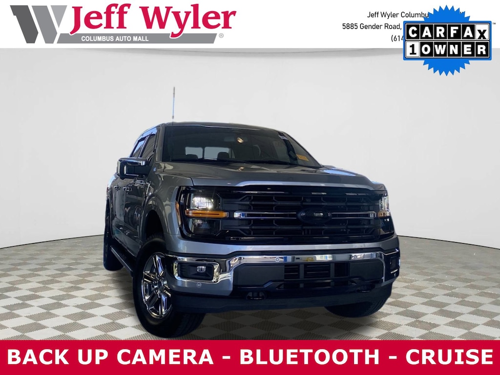 2024 Ford F-150 XLT 4WD - Advanced Tech Meets Rugged Performance!This Silver Metallic F-150 combines the power of a 325HP EcoBoost 2.7L Twin-Turbo V6 with cutting-edge technology. Features SYNC 4 with wireless Apple CarPlay/Android Auto, 360-degree camera system, and adaptive cruise control with stop-and-go capability. 5-Star Overall Safety Rating includes Pre-Collision Assist with Pedestrian Detection, Lane Keeping Alert, and Ford Co-Pilot360 suite. Advanced driver assistance features like hands-off cruise control and automatic emergency braking provide peace of mind. Exceptional Value - Priced below KBB Fair Purchase Price with only 3,173 miles! CARFAX One-Owner with clean history ensures reliability. Low-Mileage Confidence - This barely-driven truck offers new-vehicle reliability at used-car savings. Comprehensive inspections and available certifications protect your investment. Why Jeff Wyler Columbus? Home of the Fresh Start Program, we make driving home your new truck easy with flexible financing options and dedicated customer service.Premium comfort features include heated seats, wireless charging, and intelligent access with push-button start. Part-time 4WD handles any terrain with confidence.