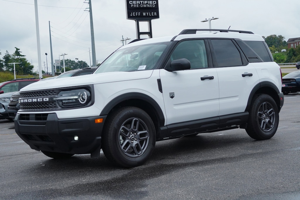 Jeff Wyler Chrysler Dodge Jeep of Lawrenceburg is very proud to offer this stunning-looking 2025 Ford Bronco Sport Big Bend in Oxford White. Convenience Package (Front Driver/Passenger Seat Back Map Pockets, Heated 8-Way Power Driver's Seat, LED Fog Lamps, Premium Wrapped Steering Wheel, and Universal Garage Door Opener (UGDO)), Equipment Group 200A, 4-Wheel Disc Brakes, 6 Speakers, ABS brakes, Air Conditioning, Alloy wheels, AM/FM radio: SiriusXM, AM/FM Stereo, Auto High-beam Headlights, Automatic temperature control, Brake assist, Cloth w/Easy-to-Clean Front Bucket Seats, Compass, Delay-off headlights, Driver door bin, Driver vanity mirror, Dual front impact airbags, Dual front side impact airbags, Electronic Stability Control, Emergency communication system: SYNC 4 911 Assist, Four wheel independent suspension, Front anti-roll bar, Front Bucket Seats, Front Center Armrest, Front reading lights, Fully automatic headlights, Heated door mirrors, Illuminated entry, Knee airbag, Low tire pressure warning, Occupant sensing airbag, Outside temperature display, Overhead airbag, Overhead console, Panic alarm, Passenger door bin, Passenger vanity mirror, Power door mirrors, Power steering, Power windows, Radio data system, Rear anti-roll bar, Rear Parking Sensors, Rear reading lights, Rear seat center armrest, Rear window defroster, Rear window wiper, Remote keyless entry, Security system, SiriusXM, Speed control, Speed-sensing steering, Speed-Sensitive Wipers, Split folding rear seat, Steering wheel mounted audio controls, SYNC 4 w/Enhanced Voice Recognition, Tachometer, Telescoping steering wheel, Tilt steering wheel, Traction control, Trip computer, Variably intermittent wipers, and Wheels: 17" Carbonized Gray-Painted Aluminum Our PRE-OWNED vehicles are put through a rigorous 167- POINT QUALITY ASSURANCE INSPECTION along with an average amount of over $1,400.00 SPENT to recondition each vehicle so we can be sure to deliver you the highest quality vehicle like you deserve! ***ONLINE PRICE DOES NOT INCLUDE WYLER FAMILY FIRST PACKAGE*** Stop by 4136 Shelbyville Road to see for yourself, or give us a call @ 502-897-3151 to schedule your test drive! Ask about available certifications.