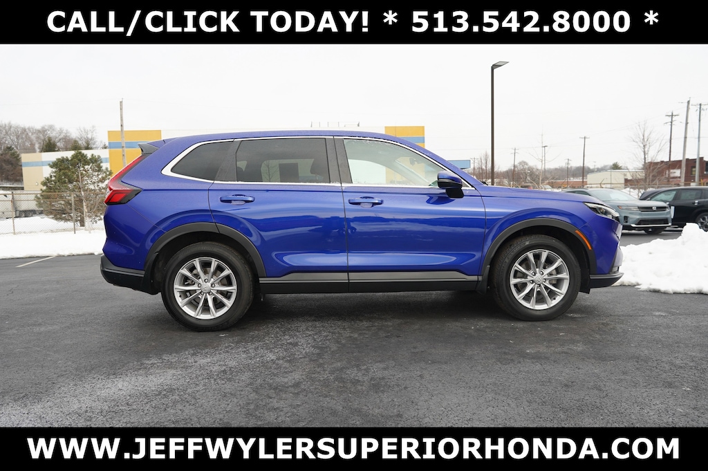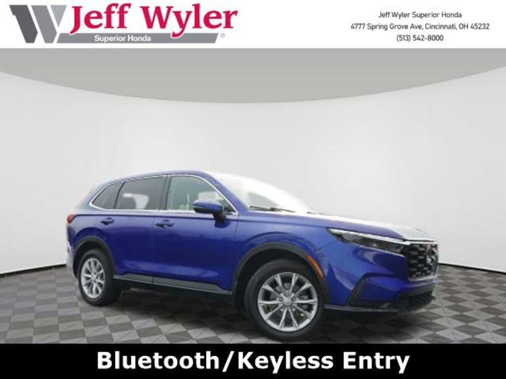 Jeff Wyler Superior Honda is pumped up to offer this good-looking 2023 Honda CR-V EX in Still Night Pearl. BLUETOOTH, MOONROOF SUNROOF, CLEAN CARFAX...NO ACCIDENTS, HONDA CERTIFIED!, REMAINDER OF FACTORY WARRANTY, RECENT SUPERIOR TRADE, BOUGHT, SERVICED AND TRADED AT SUPERIOR, and ONE OWNER CR-V EX, 4D Sport Utility, 1.5L I4 DOHC 16V, CVT, AWD, Still Night Pearl, Black Cloth, 4-Wheel Disc Brakes, 5.64 Axle Ratio, 6 Speakers, ABS brakes, Adaptive Cruise Control: Adaptive Cruise Control (ACC) with Low-Speed Follow, Air Conditioning, Alloy wheels, Apple CarPlay/Android Auto, Auto High-beam Headlights, Automatic temperature control, Brake assist, Bumpers: body-color, Cloth Seat Trim, Compass, Delay-off headlights, Driver door bin, Driver vanity mirror, Dual front impact airbags, Dual front side impact airbags, Electronic Stability Control, Exterior Parking Cameras, Four wheel independent suspension, Front anti-roll bar, Front Bucket Seats, Front Center Armrest, Front dual zone A/C, Front reading lights, Fully automatic headlights, Heated door mirrors, Heated Front Bucket Seats, Heated front seats, Illuminated entry, Knee airbag, Low tire pressure warning, Occupant sensing airbag, Outside temperature display, Overhead airbag, Overhead console, Panic alarm, Passenger door bin, Passenger vanity mirror, Power door mirrors, Power driver seat, Power moonroof, Power steering, Power windows, Radio data system, Radio: 240-Watt AM/FM Audio System, Rear anti-roll bar, Rear reading lights, Rear seat center armrest, Rear side impact airbag, Rear window defroster, Rear window wiper, Remote keyless entry, Security system, Speed control, Speed-sensing steering, Speed-Sensitive Wipers, Split folding rear seat, Spoiler, Steering wheel mounted audio controls, Tachometer, Telescoping steering wheel, Tilt steering wheel, Traction control, Trip computer, Turn signal indicator mirrors, Variably intermittent wipers, and Wheels: 18" Sparkle Silver Metallic Our PRE-OWNED vehicles are put through a rigorous 167- POINT QUALITY ASSURANCE INSPECTION along with an average amount of over $1,400.00 SPENT to recondition each vehicle so we can be sure to deliver you the highest quality vehicle like you deserve! ***ONLINE PRICE DOES NOT INCLUDE WYLER FAMILY FIRST PACKAGE*** Stop by 4777 Spring Grove Ave. Road to see for yourself, or give us a call @ 283-209-1858 to schedule your test drive!Vehicle pricing includes all offers and incentives. Due to limited inventory, offers and pricing are all subject to change. Tax, Title, Tags and $387 doc fees are not included in vehicle price shown and must be paid by the purchaser. Doc fees vary by location. Financing w/approved credit. Mileage est. Based on current EPA estimates reflecting new EPA methods beginning w/ 2008 models. For comparison only. Do not compare to pre 2008 models. Actual mileage may vary based on how you drive and maintain your vehicle. Information on this site includes 3rd party data believed to be reliable, subject to change without notice. Jeff Wyler reserves the right to correct any errors and/or omissions in the compilation or presentation of this data and makes no representations express or implied to any prospective purchaser as to the vehicle's condition, specifications, history, equipment or equipment function, price or warranties. This vehicle may be subject to an open recall that has not been repaired. Please consult safercar.gov for more information on the current status. It is the responsibility of purchaser to confirm any data prior to purchase. Other than MSRP, all offers only apply to this vehicle and are subject to change. Vehicle prices are subject to change and all vehicles are subject to prior sale and may not be available when you are ready to purchase. Prices listed on any other website may not be accepted. Dealership advertises the sale of vehicles through a number of different channels and cannot always control when they are updated. Wyler? and Jeff Wyler? are registered trademark