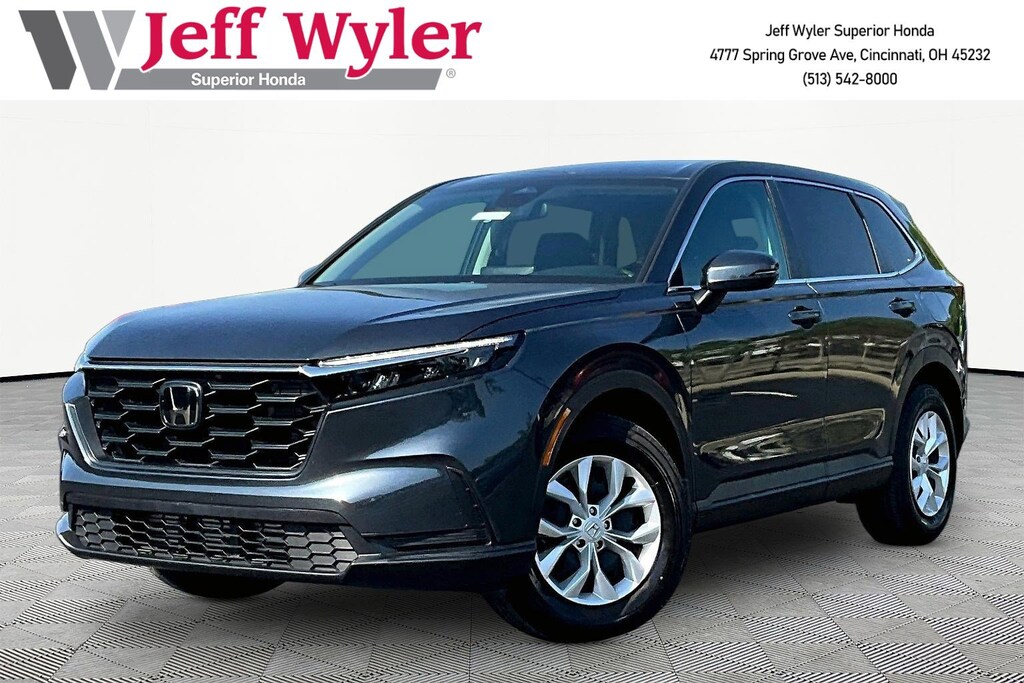 Jeff Wyler Superior Honda is proud to offer this handsome 2025 Honda CR-V LX in Gray. BLUETOOTH, HONDA CERTIFIED!, BOUGHT, SERVICED AND TRADED AT SUPERIOR, and ONE OWNER CR-V LX, HondaTrue Certified Certified, 4D Sport Utility, 1.5L I4 DOHC 16V, CVT, AWD, Gray, Balack Cloth, 4 Speakers, 4-Wheel Disc Brakes, ABS brakes, Adaptive Cruise Control: Adaptive Cruise Control (ACC) with Low-Speed Follow, Air Conditioning, Apple CarPlay/Android Auto, Auto High-beam Headlights, Automatic temperature control, Brake assist, Bumpers: body-color, Cloth Seat Trim, Compass, Delay-off headlights, Driver door bin, Driver vanity mirror, Dual front impact airbags, Dual front side impact airbags, Electronic Stability Control, Exterior Parking Cameras, Four wheel independent suspension, Front anti-roll bar, Front Bucket Seats, Front Center Armrest, Front reading lights, Fully automatic headlights, Illuminated entry, Knee airbag, Low tire pressure warning, Occupant sensing airbag, Outside temperature display, Overhead airbag, Overhead console, Panic alarm, Passenger door bin, Passenger vanity mirror, Power door mirrors, Power steering, Power windows, Radio data system, Radio: 160-Watt AM/FM Audio System, Rear anti-roll bar, Rear reading lights, Rear seat center armrest, Rear side impact airbag, Rear window defroster, Rear window wiper, Remote keyless entry, Security system, Speed control, Speed-sensing steering, Speed-Sensitive Wipers, Split folding rear seat, Spoiler, Steering wheel mounted audio controls, Tachometer, Telescoping steering wheel, Tilt steering wheel, Traction control, Trip computer, Turn signal indicator mirrors, Variably intermittent wipers, and Wheels: 17" Steel with Covers Our PRE-OWNED vehicles are put through a rigorous 167- POINT QUALITY ASSURANCE INSPECTION along with an average amount of over $1,400.00 SPENT to recondition each vehicle so we can be sure to deliver you the highest quality vehicle like you deserve! ***ONLINE PRICE DOES NOT INCLUDE WYLER FAMILY FIRST PACKAGE*** Stop by 4777 Spring Grove Ave. Road to see for yourself, or give us a call @ 283-209-1858 to schedule your test drive!Vehicle pricing includes all offers and incentives. Due to limited inventory, offers and pricing are all subject to change. Tax, Title, Tags and $387 doc fees are not included in vehicle price shown and must be paid by the purchaser. Doc fees vary by location. Financing w/approved credit. Mileage est. Based on current EPA estimates reflecting new EPA methods beginning w/ 2008 models. For comparison only. Do not compare to pre 2008 models. Actual mileage may vary based on how you drive and maintain your vehicle. Information on this site includes 3rd party data believed to be reliable, subject to change without notice. Jeff Wyler reserves the right to correct any errors and/or omissions in the compilation or presentation of this data and makes no representations express or implied to any prospective purchaser as to the vehicle's condition, specifications, history, equipment or equipment function, price or warranties. This vehicle may be subject to an open recall that has not been repaired. Please consult safercar.gov for more information on the current status. It is the responsibility of purchaser to confirm any data prior to purchase. Other than MSRP, all offers only apply to this vehicle and are subject to change. Vehicle prices are subject to change and all vehicles are subject to prior sale and may not be available when you are ready to purchase. Prices listed on any other website may not be accepted. Dealership advertises the sale of vehicles through a number of different channels and cannot always control when they are updated. Wyler? and Jeff Wyler? are registered trademarks of the Jeff Wyler Automotive Family, Inc.