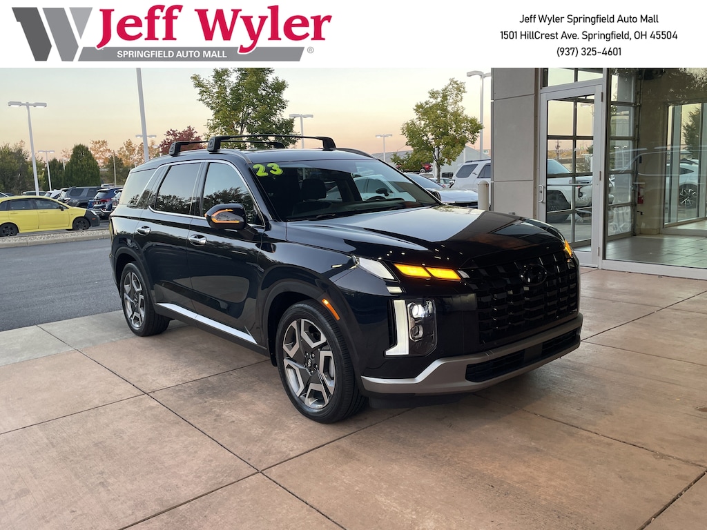 Jeff Wyler Springfield Auto Mall is pumped up to offer this beautiful 2023 Hyundai Palisade Limited in Moonlight Cloud. Well equipped with: Option Group 01, 12 Speakers, 3.648 Axle Ratio, 3rd row seats: split-bench, 4-Wheel Disc Brakes, ABS brakes, Air Conditioning, Alloy wheels, AM/FM radio: SiriusXM, Apple CarPlay & Android Auto, Auto High-beam Headlights, Auto-dimming door mirrors, Auto-dimming Rear-View mirror, Auto-leveling suspension, Automatic temperature control, Brake assist, Bumpers: body-color, Cargo Net, Carpeted Floor Mats, Compass, Delay-off headlights, Driver door bin, Driver vanity mirror, Dual front impact airbags, Dual front side impact airbags, Electronic Stability Control, Emergency communication system: Blue Link Connected Car Service (3-year complimentary subscription), Exterior Parking Camera Rear, Four wheel independent suspension, Front anti-roll bar, Front Bucket Seats, Front Center Armrest, Front dual zone A/C, Front reading lights, Fully automatic headlights, Garage door transmitter: HomeLink, harman/kardon® Speakers, Heads-Up Display, Heated & Ventilated Front Bucket Seats, Heated door mirrors, Heated front seats, Heated rear seats, Heated steering wheel, Illuminated entry, Knee airbag, Leather Seat Trim, Low tire pressure warning, Memory seat, Navigation System, Occupant sensing airbag, Outside temperature display, Overhead airbag, Overhead console, Panic alarm, Passenger door bin, Passenger vanity mirror, Power door mirrors, Power driver seat, Power Liftgate, Power moonroof, Power passenger seat, Power steering, Power windows, Radio data system, Radio: AM/FM/MP3 Premium Audio System, Rain sensing wipers, Rear air conditioning, Rear anti-roll bar, Rear audio controls, Rear reading lights, Rear side impact airbag, Rear window defroster, Rear window wiper, Reclining 3rd row seat, Remote keyless entry, Security system, Speed control, Speed-sensing steering, Splash Trim, Split folding rear seat, Spoiler, Steering wheel mounted audio controls, Tachometer, Telescoping steering wheel, Tilt steering wheel, Traction control, Trip computer, Turn signal indicator mirrors, Variably intermittent wipers, Ventilated front seats, Ventilated rear seats, Wheel Locks, and Wheels: 20" x 7.5J Alloy. Ask about available certifications. Used vehicles 10 years of age or newer with less than 100,000 miles are eligible for the Wyler Assurance Program, but eligible vehicles must pass our reconditioning process and multi-point inspection. Provided the vehicle passes inspection, vehicles will be eligible for the 6 month/6,000 mile limited warranty. The 6 month/6,000 mile limited warranty is NOT available on AS-IS vehicles, wholesale vehicles, lease buyback/pass-thru vehicles or un-inspected vehicles. Note that this program can also apply to vehicles where the remaining factory coverage is less than 6 months or 6,000 miles. Please check the Federal Trade Commission (FTC) Buyers guide on the vehicle for full details as to whether or not warranty coverage may apply. Contact Dealer for additional details. The Wyler Assurance 6 month/6,000 Mile limited warranty ends 6 months from the date of the Retail Purchase Agreement (BUYERS ORDER) or when the vehicle's odometer registers 6,000 additional miles to the mileage listed on the BUYERS ORDER, whichever comes first. Your Deductible - The warranty holder on your contract pays the first $100 of each covered repair.