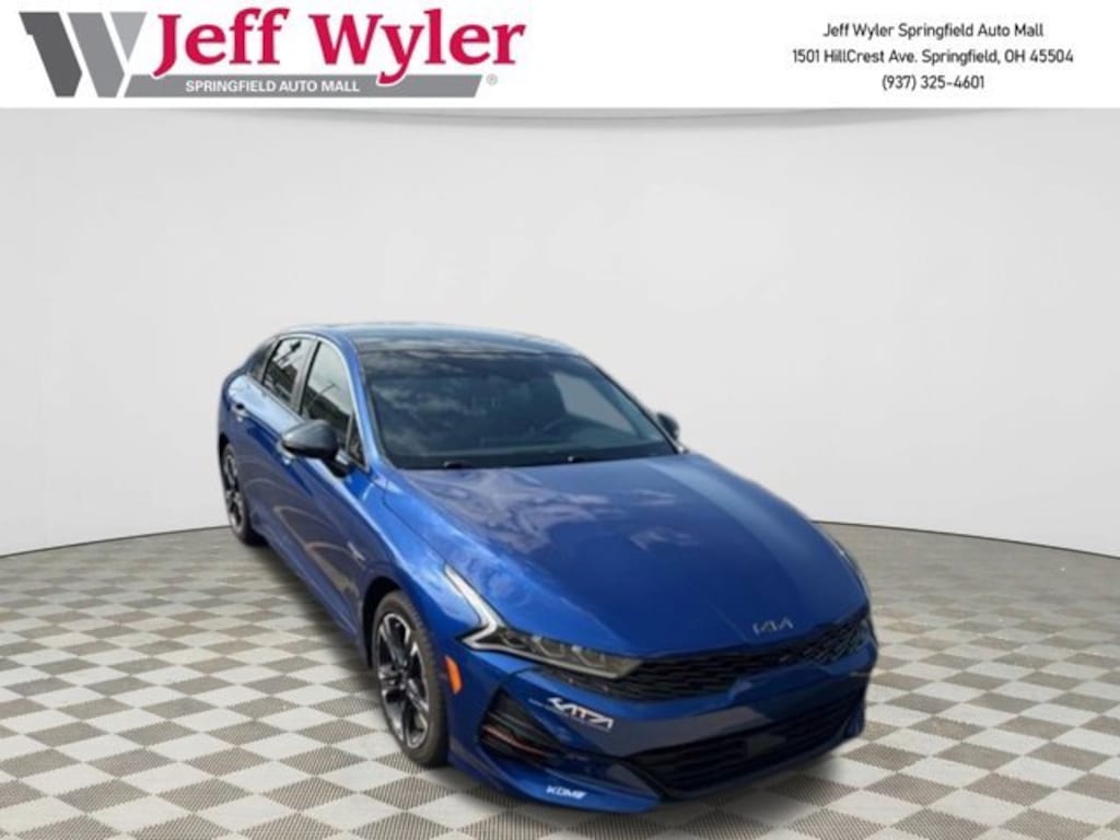 Jeff Wyler Springfield Auto Mall is proud to offer this outstanding-looking 2023 Kia K5 GT-Line in Sapphire Blue. Well equipped with: GT-Line Panoramic Sunroof Package (LED Interior Lighting and Panoramic Sunroof), GT-Line Premium Package (Forward Collision Avoidance-Assist, Highway Driving Assist, LED Projection Headlamps, and Smart Cruise Control w/Stop & Go), 4-Wheel Disc Brakes, 6 Speakers, ABS brakes, Air Conditioning, Alloy wheels, AM/FM radio: SiriusXM, Apple CarPlay & Android Auto, Auto High-beam Headlights, Automatic temperature control, Brake assist, Bumpers: body-color, Carpeted Floor Mats, Cloth/SynTex Seat Trim, Delay-off headlights, Driver door bin, Driver vanity mirror, Dual front impact airbags, Dual front side impact airbags, EC Mirror w/Homelink, Electronic Stability Control, Four wheel independent suspension, Front anti-roll bar, Front Bucket Seats, Front Center Armrest, Front dual zone A/C, Front fog lights, Front reading lights, Fully automatic headlights, Heated door mirrors, Illuminated entry, Knee airbag, Low tire pressure warning, Navigation System, Occupant sensing airbag, Outside temperature display, Overhead airbag, Overhead console, Panic alarm, Passenger door bin, Passenger vanity mirror, Power door mirrors, Power driver seat, Power steering, Power windows, Radio data system, Radio: AM/FM/MP3 Audio System, Rear anti-roll bar, Rear seat center armrest, Rear side impact airbag, Rear window defroster, Remote keyless entry, Security system, Speed control, Speed-sensing steering, Split folding rear seat, Spoiler, Sport steering wheel, Steering wheel mounted audio controls, Tachometer, Telescoping steering wheel, Tilt steering wheel, Traction control, Trip computer, Turn signal indicator mirrors, Variably intermittent wipers, and Wheels: 18 Gloss Black Machined Finish Alloy. Ask about available certifications. Used vehicles 10 years of age or newer with less than 100,000 miles are eligible for the Wyler Assurance Program, but eligible vehicles must pass our reconditioning process and multi-point inspection. Provided the vehicle passes inspection, vehicles will be eligible for the 6 month/6,000 mile limited warranty. The 6 month/6,000 mile limited warranty is NOT available on AS-IS vehicles, wholesale vehicles, lease buyback/pass-thru vehicles or un-inspected vehicles. Note that this program can also apply to vehicles where the remaining factory coverage is less than 6 months or 6,000 miles. Please check the Federal Trade Commission (FTC) Buyers guide on the vehicle for full details as to whether or not warranty coverage may apply. Contact Dealer for additional details. The Wyler Assurance 6 month/6,000 Mile limited warranty ends 6 months from the date of the Retail Purchase Agreement (BUYERS ORDER) or when the vehicle's odometer registers 6,000 additional miles to the mileage listed on the BUYERS ORDER, whichever comes first. Your Deductible - The warranty holder on your contract pays the first $100 of each covered repair.