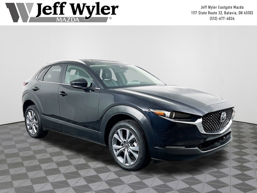Jeff Wyler Eastgate Auto Mall is pleased to offer this gorgeous 2025 Mazda CX-30 2.5 S Preferred Package in Jet Black Mica. Well equipped with: 4-Wheel Disc Brakes, 6 Speakers, ABS brakes, Air Conditioning, Alloy wheels, AM/FM radio, AppLink/Apple CarPlay and Android Auto, Auto High-beam Headlights, Automatic temperature control, Brake assist, Bumpers: body-color, Compass, Delay-off headlights, Driver door bin, Driver vanity mirror, Dual front impact airbags, Dual front side impact airbags, Electronic Stability Control, Emergency communication system: Mazda Connected Services (3-year trial subscription included), Exterior Parking Camera Rear, Frameless Auto-Dim Mirror w/HomeLink, Front anti-roll bar, Front Bucket Seats, Front Center Armrest, Front dual zone A/C, Front reading lights, Front wheel independent suspension, Fully automatic headlights, Heated door mirrors, Heated Front Bucket Seats, Heated front seats, Illuminated entry, Knee airbag, Leather Shift Knob, Leather steering wheel, Leatherette Seat Trim, Low tire pressure warning, MAZDA CONNECT Infotainment System, Memory seat, Occupant sensing airbag, Outside temperature display, Overhead airbag, Overhead console, Panic alarm, Passenger door bin, Passenger vanity mirror, Power door mirrors, Power driver seat, Power moonroof, Power steering, Power windows, Radio data system, Radio: AM/FM Audio System, Rain sensing wipers, Rear seat center armrest, Rear side impact airbag, Rear window defroster, Rear window wiper, Remote keyless entry, Speed control, Speed-sensing steering, Split folding rear seat, Spoiler, Steering wheel mounted audio controls, Tachometer, Telescoping steering wheel, Tilt steering wheel, Traction control, Trip computer, Turn signal indicator mirrors, Variably intermittent wipers, Wheel Locks, and Wheels: 18" x 7J Aluminum Alloy. Clean CARFAX. Certified. Mazda Certified Pre-Owned Details: * Includes Autocheck Vehicle History Report with 3 Year Buyback Protection. 3 month SiriusXM trial subscription. * Warranty Deductible: $0 * 160 Point Inspection * Powertrain Limited Warranty: 84 Month/100,000 Mile (whichever comes first) from original in-service date * Roadside Assistance * Vehicle History * Transferable Warranty * Limited Warranty: 12 Month/12,000 Mile (whichever comes first) after new car warranty expires or from certified purchase dateAsk about available certifications. Used vehicles 10 years of age or newer with less than 100,000 miles are eligible for the Wyler Assurance Program, but eligible vehicles must pass our reconditioning process and multi-point inspection. Provided the vehicle passes inspection, vehicles will be eligible for the 6 month/6,000 mile limited warranty. The 6 month/6,000 mile limited warranty is NOT available on AS-IS vehicles, wholesale vehicles, lease buyback/pass-thru vehicles or un-inspected vehicles. Note that this program can also apply to vehicles where the remaining factory coverage is less than 6 months or 6,000 miles. Please check the Federal Trade Commission (FTC) Buyers guide on the vehicle for full details as to whether or not warranty coverage may apply. Contact Dealer for additional details. The Wyler Assurance 6 month/6,000 Mile limited warranty ends 6 months from the date of the Retail Purchase Agreement (BUYERS ORDER) or when the vehicle's odometer registers 6,000 additional miles to the mileage listed on the BUYERS ORDER, whichever comes first. Your Deductible - The warranty holder on your contract pays the first $100 of each covered repair.