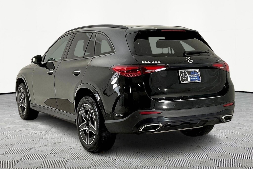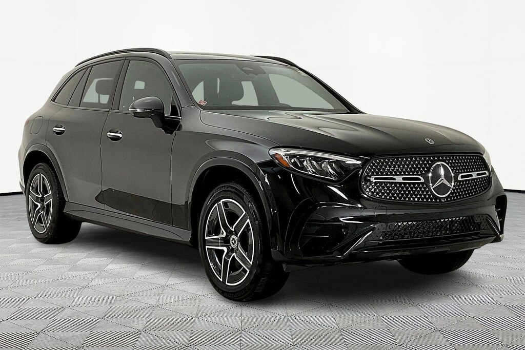 Black 2023 Mercedes-Benz GLC 300 4MATIC® 9-Speed Automatic I4 16-Way Power Front Seats w/Memory/Lumbar/Thigh Ext, 4-Way Power Lumbar Support, AMG® Line, AMG® Line Body Styling, AMG® Line Exterior, AMG® Line Floor Mats, AMG® Line Interior, Burmester® 3D Surround Sound System, Chrome Roof Rails, Enhanced Ambient Lighting, Exclusive Trim Package, Flat-Bottom Multifunction Sport Steering Wheel, GUARD 360 Protection, Heated and Ventilated Front Seats, Heated Steering Wheel, High-Gloss Black Elements, Illuminated Door Sills, MB Navigation, MB-Tex Dashboard w/Nappa Look, Night Package, Panorama Sunroof, Perforated Brake Discs, Surround View System, Wheel Arch Trim Painted in Body Color, Wheels: 19" AMG® 5-Spoke w/ Black Accents.