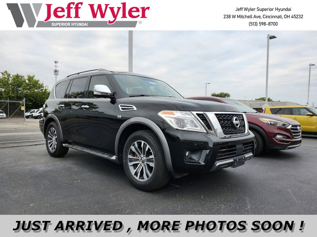 Jeff Wyler Superior Hyundai is excited to offer this attractive-looking 2019 Nissan Armada SL in Super Black. Well equipped with: Premium Package (Blind Spot Warning, Intelligent Back-Up Intervention (I-BI), Intelligent Distance Control (I-DC), Power Sliding Moonroof w/Front Tilt & Rear Slide, and Rear Cross Traffic Alert (RCTA)), 4WD, 13 Speakers, 2.937 Axle Ratio, 2nd & 3rd Row Carpeted Mats, 3rd row seats: split-bench, 4-Wheel Disc Brakes, ABS brakes, Air Conditioning, Alloy wheels, AM/FM radio: SiriusXM, Anti-whiplash front head restraints, Auto tilt-away steering wheel, Auto-dimming door mirrors, Auto-dimming Rear-View mirror, Auto-leveling suspension, Automatic temperature control, Brake assist, Bumpers: body-color, CD player, Delay-off headlights, Driver door bin, Driver vanity mirror, Dual front impact airbags, Dual front side impact airbags, Electronic Stability Control, Emergency communication system: NissanConnect Services, Four wheel independent suspension, Front anti-roll bar, Front Bucket Seats, Front Center Armrest, Front dual zone A/C, Front fog lights, Front reading lights, Fully automatic headlights, Garage door transmitter: HomeLink, Heated door mirrors, Heated Front Bucket Seats w/Driver Memory, Heated front seats, Illuminated entry, Leather Shift Knob, Leather-Appointed Seat Trim, Low tire pressure warning, Memory seat, Navigation System, Occupant sensing airbag, Outside temperature display, Overhead airbag, Overhead console, Panic alarm, Passenger door bin, Passenger vanity mirror, Power door mirrors, Power driver seat, Power Liftgate, Power passenger seat, Power steering, Power windows, Radio data system, Radio: AM/FM/SXM/CD/MP3/HD, Rain sensing wipers, Rear air conditioning, Rear anti-roll bar, Rear reading lights, Rear seat center armrest, Rear window defroster, Rear window wiper, Reclining 3rd row seat, Remote keyless entry, Roof rack: rails only, Security system, Speed control, Speed-sensing steering, Speed-Sensitive Wipers, Split folding rear seat, Spoiler, Steering wheel memory, Steering wheel mounted audio controls, Tachometer, Telescoping steering wheel, Tilt steering wheel, Traction control, Trip computer, Turn signal indicator mirrors, Variably intermittent wipers, Voltmeter, and Wheels: 20" Machined Finish Painted Alloy. This sales price excludes tax, title, and dealer fees. While every reasonable effort is made to ensure the accuracy of this information, we are not responsible for any errors or omissions contained on these pages. Used vehicles 10 years of age or newer with less than 100,000 miles are eligible for the Wyler Assurance Program, but eligible vehicles must pass our reconditioning process and multi-point inspection. Provided the vehicle passes inspection, vehicles will be eligible for the 6 month/6,000 mile limited warranty. The 6 month/6,000 mile limited warranty is NOT available on AS-IS vehicles, wholesale vehicles, lease buyback/pass-thru vehicles or un-inspected vehicles. Note that this program can also apply to vehicles where the remaining factory coverage is less than 6 months or 6,000 miles. Please check the Federal Trade Commission (FTC) Buyers guide on the vehicle for full details as to whether or not warranty coverage may apply. Contact Dealer for additional details. The Wyler Assurance 6 month/6,000 Mile limited warranty ends 6 months from the date of the Retail Purchase Agreement (BUYERS ORDER) or when the vehicle's odometer registers 6,000 additional miles to the mileage listed on the BUYERS ORDER, whichever comes first.Your Deductible - The warranty holder on your contract pays the first $100 of each covered repair.