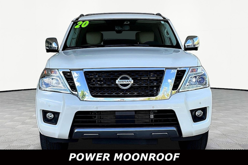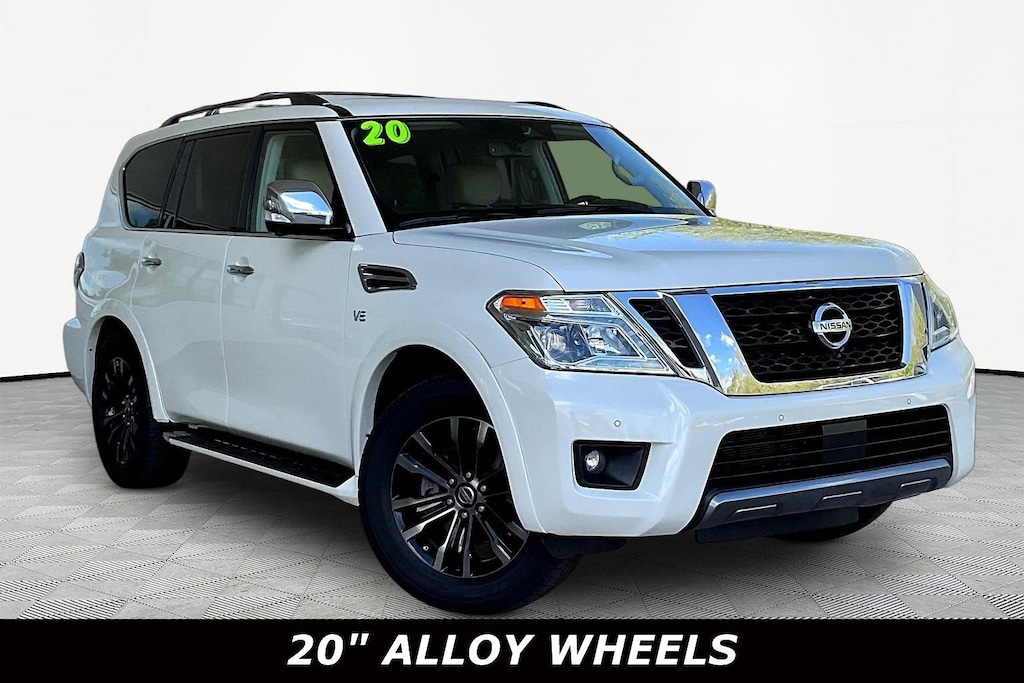 Jeff Wyler Springfield Auto Mall is delighted to offer this fantastic 2020 Nissan Armada Platinum in Pearl White Tricoat. Well equipped with: Captain's Chairs Package (2nd Row Captain's Chairs and 2nd Row Center Console w/Padded Armrest), Cargo Package, 13 Speakers, 3rd Row Carpeted Floor Mats - Captain Seat, 3rd row seats: split-bench, 4-Wheel Disc Brakes, A/V remote, ABS brakes, Air Conditioning, Alloy wheels, AM/FM radio: SiriusXM, Anti-whiplash front head restraints, Auto tilt-away steering wheel, Auto-dimming door mirrors, Auto-dimming Rear-View mirror, Auto-leveling suspension, Automatic temperature control, Axle Ratio: 2.94, Brake assist, Bumpers: body-color, CD player, Cross Bars, Delay-off headlights, Driver door bin, Driver vanity mirror, Dual front impact airbags, Dual front side impact airbags, DVD-Audio, Electronic Stability Control, Emergency communication system: NissanConnect Services, Exterior Parking Camera Rear, Four wheel independent suspension, Front anti-roll bar, Front Bucket Seats, Front Center Armrest, Front dual zone A/C, Front fog lights, Front reading lights, Fully automatic headlights, Garage door transmitter: HomeLink, Headphones, Heated & Cooled Front Bucket Seats, Heated door mirrors, Heated front seats, Heated rear seats, Heated steering wheel, Illuminated entry, Illuminated Kick Plates, Leather Shift Knob, Leather-Appointed Seat Trim, Low tire pressure warning, Memory seat, Navigation System, Occupant sensing airbag, Outside temperature display, Overhead airbag, Overhead console, Panic alarm, Passenger door bin, Passenger vanity mirror, Power door mirrors, Power driver seat, Power Liftgate, Power moonroof, Power passenger seat, Power steering, Power windows, Radio data system, Radio: AM/FM/SXM/CD/MP3/HD, Rain sensing wipers, Rear air conditioning, Rear anti-roll bar, Rear reading lights, Rear seat center armrest, Rear window defroster, Rear window wiper, Reclining 3rd row seat, Remote keyless entry, Security system, Special Paint - Pearl White, Speed control, Speed-sensing steering, Speed-Sensitive Wipers, Split folding rear seat, Spoiler, Steering wheel memory, Steering wheel mounted audio controls, Tachometer, Telescoping steering wheel, Tilt steering wheel, Traction control, Trip computer, Turn signal indicator mirrors, Variably intermittent wipers, Ventilated front seats, Voltmeter, and Wheels: 20" Machine-Faced w/Tinted Clear Coat. Ask about available certifications. Used vehicles 10 years of age or newer with less than 100,000 miles are eligible for the Wyler Assurance Program, but eligible vehicles must pass our reconditioning process and multi-point inspection. Provided the vehicle passes inspection, vehicles will be eligible for the 6 month/6,000 mile limited warranty. The 6 month/6,000 mile limited warranty is NOT available on AS-IS vehicles, wholesale vehicles, lease buyback/pass-thru vehicles or un-inspected vehicles. Note that this program can also apply to vehicles where the remaining factory coverage is less than 6 months or 6,000 miles. Please check the Federal Trade Commission (FTC) Buyers guide on the vehicle for full details as to whether or not warranty coverage may apply. Contact Dealer for additional details. The Wyler Assurance 6 month/6,000 Mile limited warranty ends 6 months from the date of the Retail Purchase Agreement (BUYERS ORDER) or when the vehicle's odometer registers 6,000 additional miles to the mileage listed on the BUYERS ORDER, whichever comes first. Your Deductible - The warranty holder on your contract pays the first $100 of each covered repair.