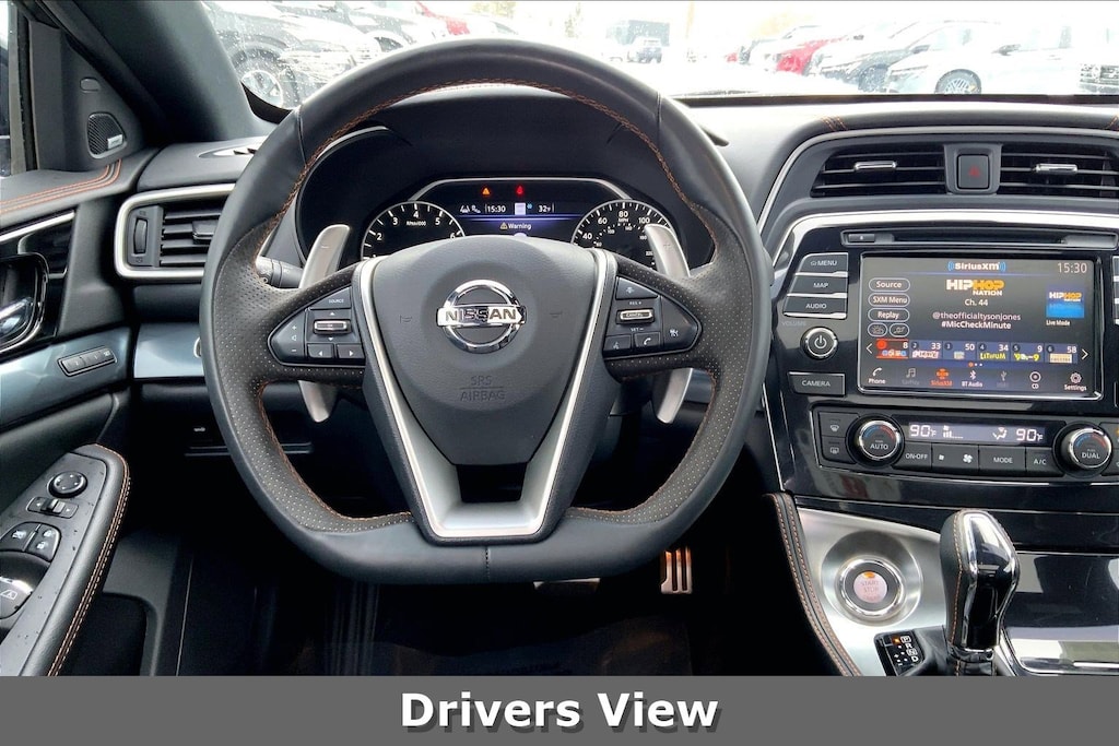 Jeff Wyler Kings Nissan is proud to offer this fantastic-looking 2022 Nissan Maxima SR in Gun Metallic. Well equipped with: 11 Speakers, 4-Wheel Disc Brakes, ABS brakes, Air Conditioning, Alloy wheels, AM/FM radio: SiriusXM, Auto High-beam Headlights, Auto-dimming door mirrors, Auto-dimming Rear-View mirror, Automatic temperature control, Bag Hooks, Blind Spot Warning, Body-Colored Splash Guards, Brake assist, Bumpers: body-color, CD player, Compass, Delay-off headlights, Driver door bin, Driver vanity mirror, Dual front impact airbags, Dual front side impact airbags, Electronic Stability Control, Emergency communication system: NissanConnect Services, Exterior Parking Camera Rear, First-Aid Kit, Four wheel independent suspension, Front anti-roll bar, Front Bucket Seats, Front Center Armrest, Front dual zone A/C, Front fog lights, Front reading lights, Front Zero Gravity Climate-Controlled Seats, Fully automatic headlights, Garage door transmitter: HomeLink, Heated door mirrors, Heated front seats, Heated steering wheel, Illuminated entry, Knee airbag, Low tire pressure warning, Memory seat, Navigation System, NissanConnect featuring Apple CarPlay and Android Auto, Occupant sensing airbag, Outside temperature display, Overhead airbag, Overhead console, Panic alarm, Passenger door bin, Passenger vanity mirror, Power door mirrors, Power driver seat, Power moonroof, Power passenger seat, Power steering, Power windows, Premium Ascot Leather-Appointed Seat Trim, Radio data system, Radio: AM/FM/CD Bose Audio System, Rear anti-roll bar, Rear reading lights, Rear seat center armrest, Rear side impact airbag, Rear window defroster, Remote keyless entry, Security system, Sliding Trunk Organizer Tray, Speed control, Speed-sensing steering, Speed-Sensitive Wipers, Split folding rear seat, Spoiler, Sport Floor Mats, Sport steering wheel, Steering wheel mounted audio controls, Tachometer, Telescoping steering wheel, Tilt steering wheel, Traction control, Trip computer, Trunk Mat, Trunk Net, Turn signal indicator mirrors, Variably intermittent wipers, Ventilated front seats, and Wheels: 19" Gloss Black Alloy w/Center Caps.Ask about available certifications.