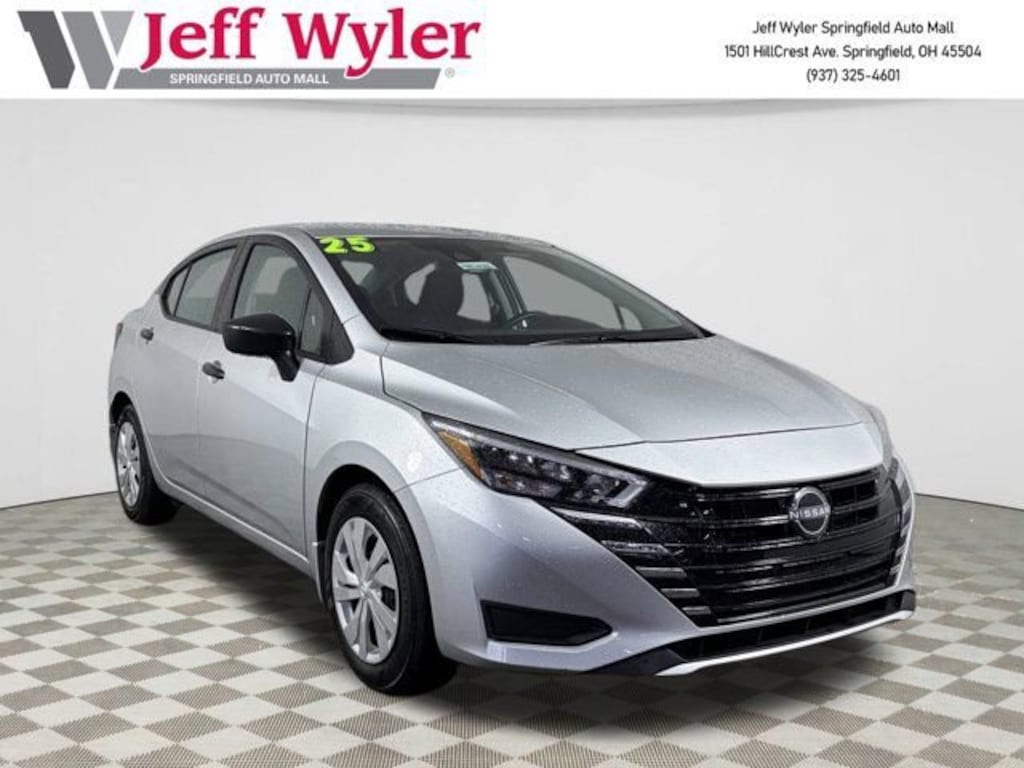 Jeff Wyler Springfield Auto Mall is excited to offer this good-looking 2025 Nissan Versa 1.6 S in Brilliant Silver Metallic. Well equipped with: Electronics Package (Frameless Auto-Dimming Mirror w/Universal Remote, Illuminated Kick Plates, and Map Pocket Light), Trunk Package (Shopping Bag Hooks and Trunk Net), 15 Steel Wheels w/Full Wheel Covers, 4 Speakers, ABS brakes, Air Conditioning, AM/FM radio, Armrest, Auto High-beam Headlights, Brake assist, Bumpers: body-color, Carpeted Floor Mats, Cloth Seat Trim, Delay-off headlights, Driver door bin, Driver vanity mirror, Dual front impact airbags, Dual front side impact airbags, Electronic Stability Control, Front anti-roll bar, Front Bucket Seats, Front reading lights, Front wheel independent suspension, Fully automatic headlights, Illuminated entry, Knee airbag, Low tire pressure warning, Occupant sensing airbag, Outside temperature display, Overhead airbag, Panic alarm, Passenger door bin, Passenger vanity mirror, Power door mirrors, Power steering, Power windows, Radio data system, Radio: AM/FM Audio System, Rear Parking Sensors, Rear side impact airbag, Rear window defroster, Speed control, Splash Guards, Steering wheel mounted audio controls, Tachometer, Telescoping steering wheel, Tilt steering wheel, Traction control, Trip computer, USB Charging Cable Set, and Variably intermittent wipers. Ask about available certifications. Used vehicles 10 years of age or newer with less than 100,000 miles are eligible for the Wyler Assurance Program, but eligible vehicles must pass our reconditioning process and multi-point inspection. Provided the vehicle passes inspection, vehicles will be eligible for the 6 month/6,000 mile limited warranty. The 6 month/6,000 mile limited warranty is NOT available on AS-IS vehicles, wholesale vehicles, lease buyback/pass-thru vehicles or un-inspected vehicles. Note that this program can also apply to vehicles where the remaining factory coverage is less than 6 months or 6,000 miles. Please check the Federal Trade Commission (FTC) Buyers guide on the vehicle for full details as to whether or not warranty coverage may apply. Contact Dealer for additional details. The Wyler Assurance 6 month/6,000 Mile limited warranty ends 6 months from the date of the Retail Purchase Agreement (BUYERS ORDER) or when the vehicle's odometer registers 6,000 additional miles to the mileage listed on the BUYERS ORDER, whichever comes first. Your Deductible - The warranty holder on your contract pays the first $100 of each covered repair.