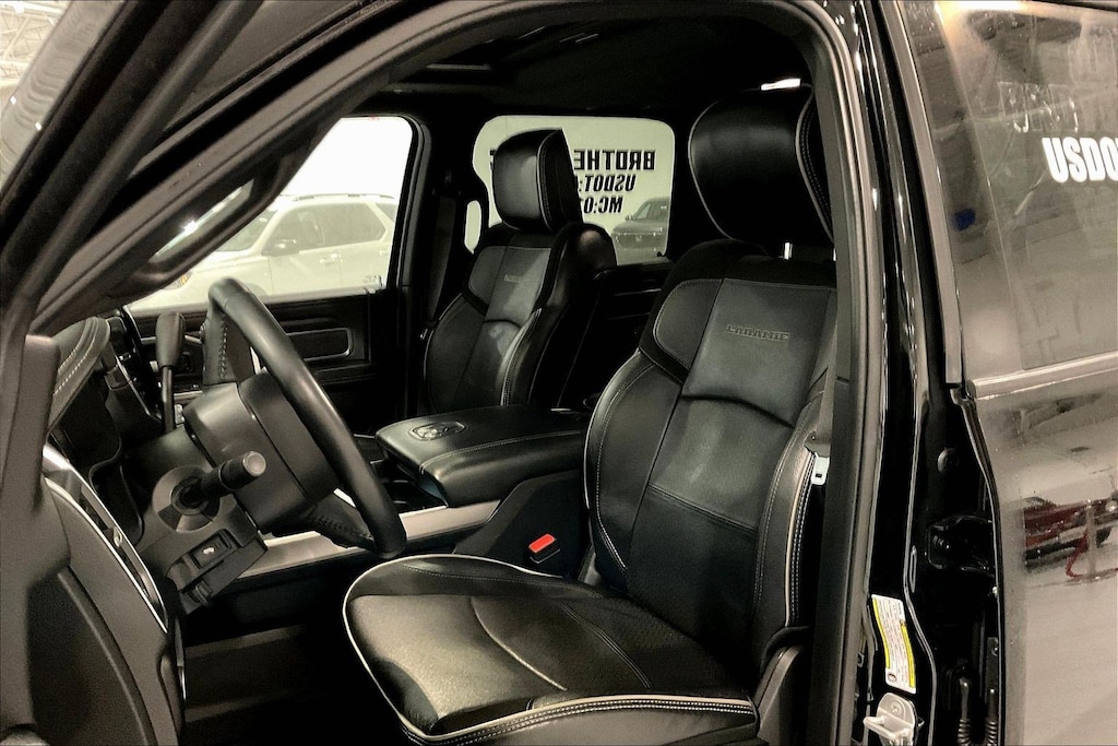 4WD/AWD, 12" Touchscreen Display, 17 Speaker harman/kardon Premium Sound, 18" x 8" Polished Aluminum Wheels, 2 Way Rear Headrest Seat, 220 Amp Alternator, 2nd Row In Floor Storage Bins, 3.73 Axle Ratio, 4 Way Front Headrests, 4-Wheel Disc Brakes, 4G LTE Wi-Fi Hot Spot, 50 Gallon Fuel Tank, 6000# Front Axle w/Hub Ext, 8.4" Touchscreen Display, ABS brakes, Active Noise Control System, Adaptive Cruise Control w/Stop, Adaptive Steering System, Air Conditioning, Alexa Built-In, All R1 High Radios, All Radio Equipped Vehicles, AM/FM radio: SiriusXM with 360L, Apple CarPlay, Apple CarPlay/Android Auto, Auto Adjust In Reverse Exterior Mirrors, Auto Dimming Exterior Passenger Mirror, Auto High Beam Headlamp Control, Auto Level Rear Air Suspension, Auto Power-Folding Mirrors, Auto-Dimming Exterior Mirrors, Auto-dimming Rear-View mirror, Automatic temperature control, Black Exterior Truck Badging, Black Headlamp Bezels, Black Interior Accents, Black RAM Head Tailgate Badge, Black Tail Lamp Bezels, Black Wheel Center Hub, Blind Spot & Cross Path Detection, Body Color Grille Surround, Box & Rear Fender Clearance Lamps, Brake assist, Bumpers: body-color, Center Hub, Chrome Exterior Mirrors, Clearance Lamps, Cluster 12" TFT Color Display, Compass, Connected Travel & Traffic Services, Connectivity - US/Canada, CTR Stop Lamp w/Cargo View Camera, Dash Pass Thru Wire Circuits, Delay-off headlights, Digital Rearview Mirror, Disassociated Touchscreen Display, Driver door bin, Driver vanity mirror, Dual front impact airbags, Dual front side impact airbags, Dual Rear Wheels, Electronic Stability Control, Electronically Controlled Throttle, Exterior Mirrors Courtesy Lamps, Exterior Mirrors w/Heating Element, Exterior Mirrors w/Memory, Exterior Mirrors w/Supplemental Signals, Foam Bottle Insert (Door Trim Panel), Folding Flat Load Floor Storage, For Details Visit DriveUconnect.com, Forward & Reverse Utility Lights, Front anti-roll bar, Front Center Armrest w/Storage, Front dual zone A/C, Front LED Fog Lamps, Front Seat Back Map Pockets, Full Speed Forward Collision Warning Plus, Fully automatic headlights, Garage door transmitter, Global Telematics Box Module (TBM), Gloss Black Grille Billets/Accents, Google Android Auto, GPS Antenna Input, GPS Navigation, HD Radio, Heated door mirrors, Heated Front Seats, Heated front seats, Heated Second Row Seats, Heated Steering Wheel, Heavy Duty Snow Plow Prep Group, High Back Seats, I/P Mounted Auxiliary Switches, Illuminated entry, Integrated Center Stack Radio, Integrated Voice Command w/Bluetooth, Lane Keep Assist, Laramie Level B Equipment Group, Leather steering wheel, Leather Trim 40/20/40 Bench Seat, LED Reflector Headlamps, LED Tail Lamps, Low tire pressure warning, Manufacturer's Statement of Origin, Mirror Running Lights, MOPAR Front & Rear Rubber Floor Mats, MOPAR Spray In Bedliner, Night Edition, Occupant sensing airbag, Off-Road Information Pages, Overhead airbag, Painted Flat Cab-Length Side Steps, Panic alarm, ParkSense Front/Rear Park Assist System, ParkView Rear Back-Up Camera, Passenger door bin, Power 8-Way Adjustable Passenger Seat, Power Adjust 8-Way Driver Seat, Power Adjust Mirrors, Power Adjustable Pedals w/Memory, Power door mirrors, Power driver seat, Power Heat Fold Memory Telescopic Mirrors, Power passenger seat, Power steering, Power Sunroof, Power Telescoping Mirrors, Power windows, Power-Adjustable Convex Aux Mirrors, Quick Order Package 2HH Laramie, Radio data system, Radio: Uconnect 5 Nav w/12.0" Display, Radio: Uconnect 5 Nav w/8.4" Display, Rain Sensitive Windshield Wipers, Rear 60/40 Folding Seat, Rear Power Sliding Window, Rear step bumper, Rear Window Defroster, Remote keyless entry, Remote Tailgate Release, Safety Group, Security system, Selectable Tire Fill Alert, SiriusXM Radio Service, SiriusXM w/360L, Speed control, Split folding rear seat, Sport Performance Hood, Steering wheel mounted audio controls, Surround View Camera System, Tachometer, Tilt steering wheel, Tip St