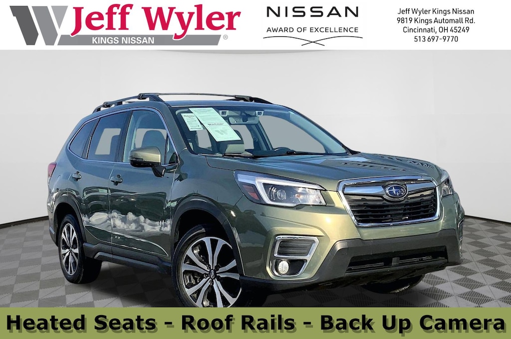 Jeff Wyler Kings Nissan is excited to offer this beautiful-looking 2021 Subaru Forester Limited in . Well equipped with: 3.70 Axle Ratio, 4-Wheel Disc Brakes, 6 Speakers, ABS brakes, Air Conditioning, Alloy wheels, AM/FM radio: SiriusXM, Auto High-beam Headlights, Automatic temperature control, Brake assist, Bumpers: body-color, CD player, Driver door bin, Driver vanity mirror, Dual front impact airbags, Dual front side impact airbags, Electronic Stability Control, Emergency communication system: STARLINK Safety and Security (Subscription Required), Exterior Parking Camera Rear, Four wheel independent suspension, Front anti-roll bar, Front Bucket Seats, Front Center Armrest, Front dual zone A/C, Front fog lights, Front reading lights, Fully automatic headlights, Heated door mirrors, Heated Front Bucket Seats, Heated front seats, Illuminated entry, Knee airbag, Leather Shift Knob, Low tire pressure warning, Occupant sensing airbag, Outside temperature display, Overhead airbag, Overhead console, Paddle-Shift Control Switches, Panic alarm, Passenger door bin, Passenger vanity mirror, Perforated Leather-Trimmed Upholstery, Power door mirrors, Power driver seat, Power Liftgate, Power moonroof: Panoramic, Power steering, Power windows, Radio data system, Radio: Subaru Starlink 8.0" Multimedia Plus System, Rear anti-roll bar, Rear seat center armrest, Rear window defroster, Rear window wiper, Remote keyless entry, Roof rack: rails only, Security system, Speed control, Speed-sensing steering, Split folding rear seat, Spoiler, STARLINK/Apple CarPlay/Android Auto, Steering wheel mounted audio controls, Tachometer, Telescoping steering wheel, Tilt steering wheel, Traction control, Trip computer, Turn signal indicator mirrors, Variably intermittent wipers, and Wheels: 18" x 7.0J Black Machine Finish Alum Alloy.Ask about available certifications.
