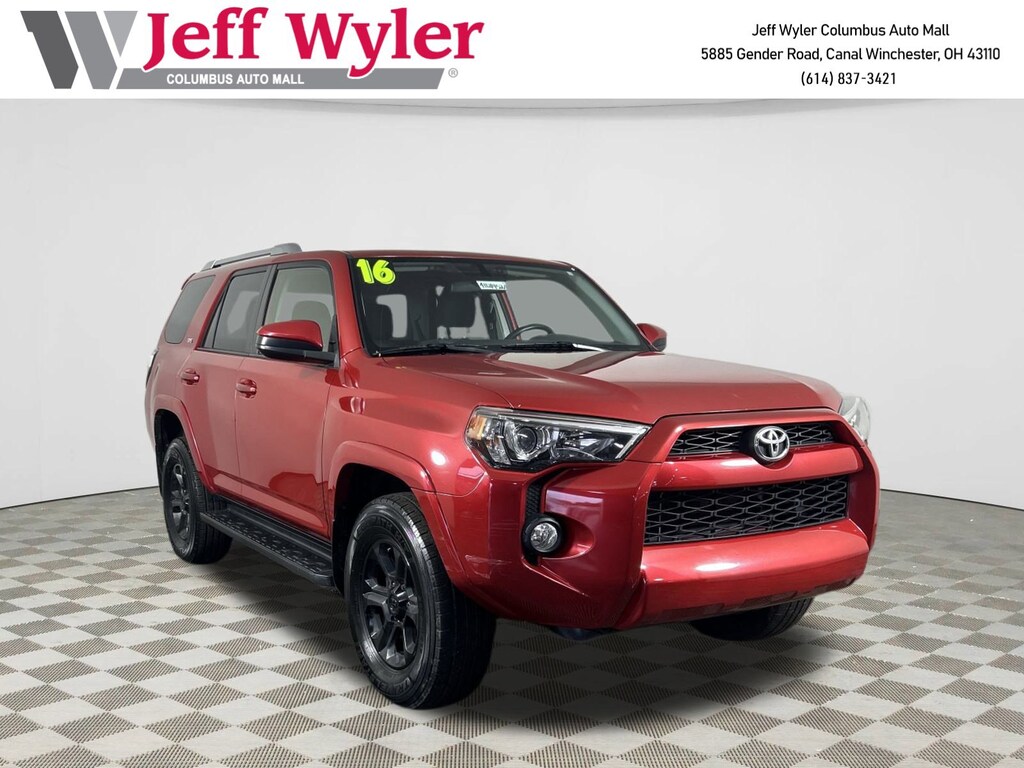2016 Toyota 4Runner Red 4.0L V6 SMPI DOHC 5-Speed Automatic with Overdrive SR5 4WD 4WD, Cloth. Clean CARFAX.Odometer is 30194 miles below market average!Awards: * 2016 KBB.com Best Resale Value AwardsCome visit the all new Jeff Wyler Chevrolet of Columbus the official Home of the Fresh Start Program! See how easy it is drive your new vehicle home today.Ask about available certifications.