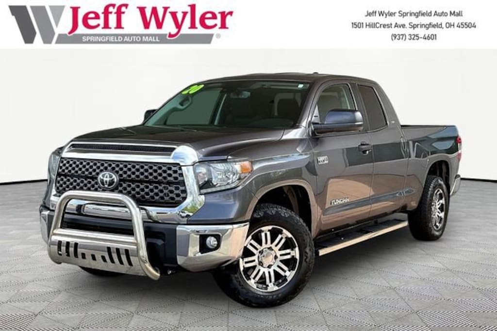 Jeff Wyler Springfield Auto Mall is honored to offer this wonderful 2020 Toyota Tundra SR5 in Magnetic Gray Metallic. Well equipped with: 18 Styled Steel Wheels, 3-Passenger Front Bench Seat, 4-Wheel Disc Brakes, 4.30 Axle Ratio, ABS brakes, Air Conditioning, All Weather Floor Liner & Door Sill Protector Pkg, AM/FM radio: SiriusXM, Apple CarPlay/Android Auto, Auto High-beam Headlights, Brake assist, Brushed Stainless Steel Stepboards, Deck Rail System, Delay-off headlights, Driver door bin, Dual front impact airbags, Dual front side impact airbags, Electronic Stability Control, Emergency communication system: Safety Connect with 1-year trial, Exterior Parking Camera Rear, Fabric Seat Trim, Front anti-roll bar, Front Center Armrest w/Storage, Front reading lights, Front wheel independent suspension, Fully automatic headlights, Heated door mirrors, Illuminated entry, Knee airbag, Low tire pressure warning, Occupant sensing airbag, Outside temperature display, Overhead airbag, Overhead console, Panic alarm, Passenger door bin, Power door mirrors, Power steering, Power windows, Radio data system, Rear reading lights, Rear step bumper, Remote keyless entry, Safety Connect, SiriusXM Radio, Speed control, Speed-sensing steering, Split folding rear seat, Steering wheel mounted audio controls, Tachometer, Tilt steering wheel, Traction control, Trip computer, and Voltmeter. Ask about available certifications. Used vehicles 10 years of age or newer with less than 100,000 miles are eligible for the Wyler Assurance Program, but eligible vehicles must pass our reconditioning process and multi-point inspection. Provided the vehicle passes inspection, vehicles will be eligible for the 6 month/6,000 mile limited warranty. The 6 month/6,000 mile limited warranty is NOT available on AS-IS vehicles, wholesale vehicles, lease buyback/pass-thru vehicles or un-inspected vehicles. Note that this program can also apply to vehicles where the remaining factory coverage is less than 6 months or 6,000 miles. Please check the Federal Trade Commission (FTC) Buyers guide on the vehicle for full details as to whether or not warranty coverage may apply. Contact Dealer for additional details. The Wyler Assurance 6 month/6,000 Mile limited warranty ends 6 months from the date of the Retail Purchase Agreement (BUYERS ORDER) or when the vehicle's odometer registers 6,000 additional miles to the mileage listed on the BUYERS ORDER, whichever comes first. Your Deductible - The warranty holder on your contract pays the first $100 of each covered repair.