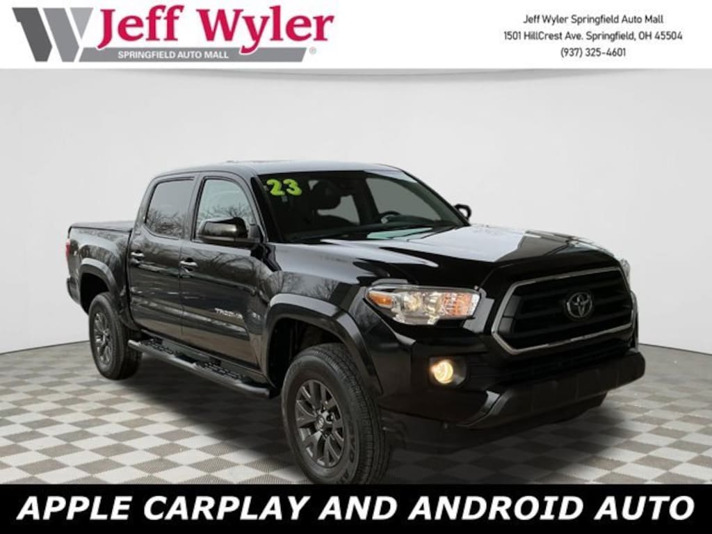 Jeff Wyler Springfield Auto Mall is very proud to offer this charming 2023 Toyota Tacoma SR5 in Black. Well equipped with: ABS brakes, Active Cruise Control, Alloy wheels, Electronic Stability Control, Front dual zone A/C, Heated door mirrors, Illuminated entry, Low tire pressure warning, Remote keyless entry, Traction control, 6 Speakers, Air Conditioning, AM/FM radio: SiriusXM, Anti-whiplash front head restraints, Apple CarPlay/Android Auto, Auto High-beam Headlights, Auto-dimming Rear-View mirror, Automatic temperature control, Axle Ratio: 3.91, Black Headlamp Bezel, Brake assist, Bumpers: body-color, Daytime Running Lamps, Driver door bin, Dual front impact airbags, Dual front side impact airbags, Emergency communication system: Safety Connect (1-year trial), Exterior Parking Camera Rear, Fabric Seat Trim, Front anti-roll bar, Front Bucket Seats, Front Center Armrest, Front fog lights, Front reading lights, Front Seats, Front wheel independent suspension, Knee airbag, Occupant sensing airbag, Outside temperature display, Overhead airbag, Overhead console, Panic alarm, Passenger door bin, Power door mirrors, Power driver seat, Power steering, Power windows, Radio: Audio, Rear step bumper, Speed control, Speed-sensing steering, Split folding rear seat, Steering wheel mounted audio controls, Tachometer, Telescoping steering wheel, Tilt steering wheel, Trip computer, Variably intermittent wipers, and Wheels: 16 Dark Gray Alloy. Ask about available certifications. Used vehicles 10 years of age or newer with less than 100,000 miles are eligible for the Wyler Assurance Program, but eligible vehicles must pass our reconditioning process and multi-point inspection. Provided the vehicle passes inspection, vehicles will be eligible for the 6 month/6,000 mile limited warranty. The 6 month/6,000 mile limited warranty is NOT available on AS-IS vehicles, wholesale vehicles, lease buyback/pass-thru vehicles or un-inspected vehicles. Note that this program can also apply to vehicles where the remaining factory coverage is less than 6 months or 6,000 miles. Please check the Federal Trade Commission (FTC) Buyers guide on the vehicle for full details as to whether or not warranty coverage may apply. Contact Dealer for additional details. The Wyler Assurance 6 month/6,000 Mile limited warranty ends 6 months from the date of the Retail Purchase Agreement (BUYERS ORDER) or when the vehicle's odometer registers 6,000 additional miles to the mileage listed on the BUYERS ORDER, whichever comes first. Your Deductible - The warranty holder on your contract pays the first $100 of each covered repair.