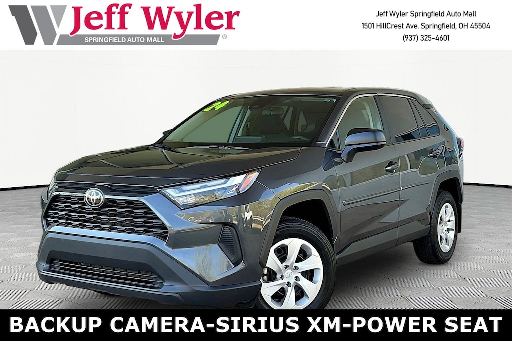 Jeff Wyler Springfield Auto Mall is pumped up to offer this stunning 2024 Toyota RAV4 LE in Magnetic Gray Metallic. Well equipped with: 17" Steel Wheels, 4-Wheel Disc Brakes, 6 Speakers, ABS brakes, Air Conditioning, AM/FM radio: SiriusXM, Auto High-beam Headlights, Axle Ratio: 3.177, Brake assist, Bumpers: body-color, Driver door bin, Driver vanity mirror, Dual front impact airbags, Dual front side impact airbags, Electronic Stability Control, Emergency communication system: Safety Connect (10-year trial), Exterior Parking Camera Rear, Fabric Seat Trim, Four wheel independent suspension, Front anti-roll bar, Front Bucket Seats, Front Center Armrest, Front reading lights, Illuminated entry, Knee airbag, Low tire pressure warning, Occupant sensing airbag, Outside temperature display, Overhead airbag, Overhead console, Panic alarm, Passenger door bin, Passenger vanity mirror, Power door mirrors, Power steering, Power windows, Radio data system, Radio: AM/FM/XM Audio System, Rear anti-roll bar, Rear seat center armrest, Rear window defroster, Rear window wiper, Remote keyless entry, Speed control, Speed-sensing steering, Split folding rear seat, Spoiler, Steering wheel mounted audio controls, Tachometer, Telescoping steering wheel, Tilt steering wheel, Traction control, and Trip computer. Ask about available certifications. Used vehicles 10 years of age or newer with less than 100,000 miles are eligible for the Wyler Assurance Program, but eligible vehicles must pass our reconditioning process and multi-point inspection. Provided the vehicle passes inspection, vehicles will be eligible for the 6 month/6,000 mile limited warranty. The 6 month/6,000 mile limited warranty is NOT available on AS-IS vehicles, wholesale vehicles, lease buyback/pass-thru vehicles or un-inspected vehicles. Note that this program can also apply to vehicles where the remaining factory coverage is less than 6 months or 6,000 miles. Please check the Federal Trade Commission (FTC) Buyers guide on the vehicle for full details as to whether or not warranty coverage may apply. Contact Dealer for additional details. The Wyler Assurance 6 month/6,000 Mile limited warranty ends 6 months from the date of the Retail Purchase Agreement (BUYERS ORDER) or when the vehicle's odometer registers 6,000 additional miles to the mileage listed on the BUYERS ORDER, whichever comes first. Your Deductible - The warranty holder on your contract pays the first $100 of each covered repair.