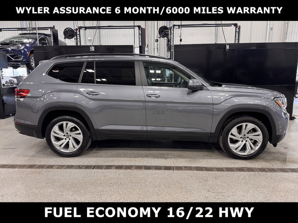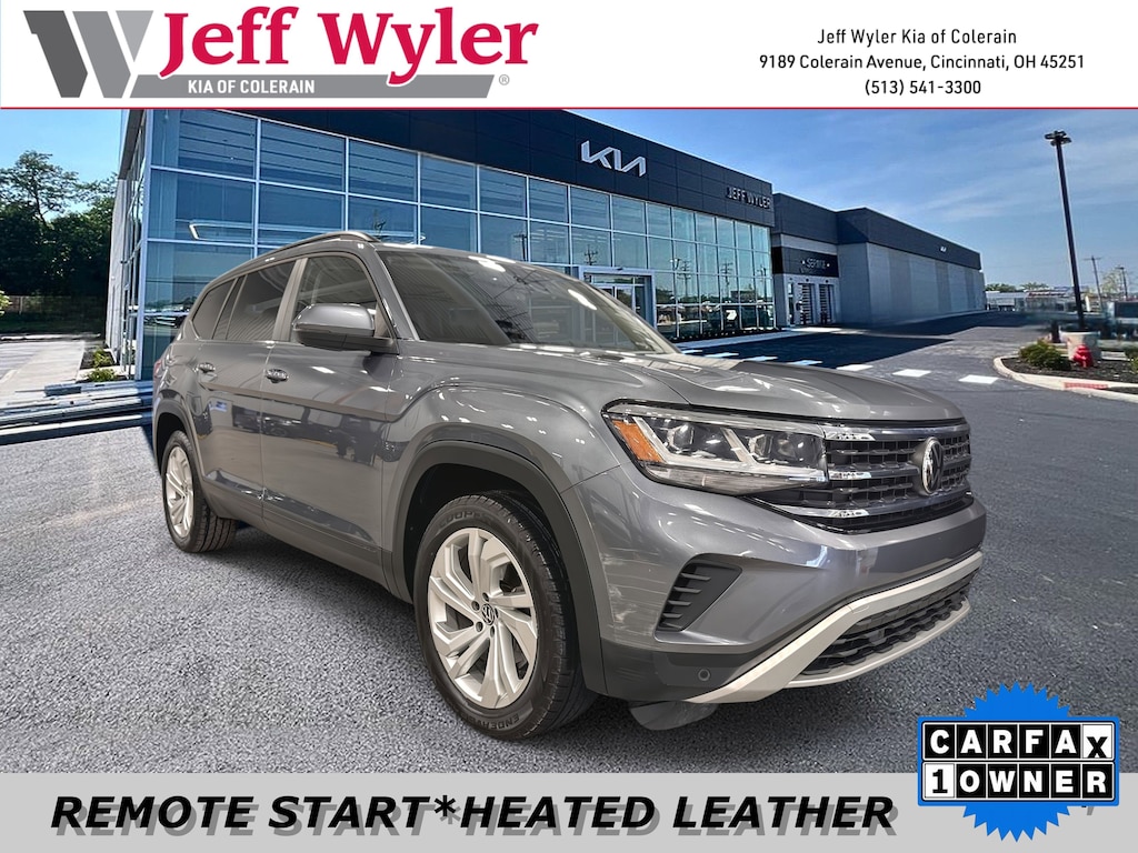 Jeff Wyler Kia of Colerain is honored to offer this attractive 2021 Volkswagen Atlas 3.6L V6 SE w/Technology in Platinum Gray Metallic. 3.60 Axle Ratio, 3rd row seats: split-bench, 4-Wheel Disc Brakes, 6 Speakers, ABS brakes, Air Conditioning, Alloy wheels, Auto-dimming Rear-View mirror, Automatic temperature control, Brake assist, Bumpers: body-color, Compass, Delay-off headlights, Driver door bin, Driver vanity mirror, Dual front impact airbags, Dual front side impact airbags, Electronic Stability Control, Emergency communication system: VW Car-Net services (capabilities require enrollment or subscription), Exterior Parking Camera Rear, First Aid Kit, Forward collision: FCW w/Autonomous Emergency Braking mitigation, Four wheel independent suspension, Frameless Self-Dimming Rearview Mirror, Front anti-roll bar, Front Bucket Seats, Front Center Armrest, Front dual zone A/C, Front fog lights, Front reading lights, Fully automatic headlights, Heated Comfort Front Bucket Seats, Heated door mirrors, Heated front seats, Heavy Duty Trunk Liner w/VW CarGo Blocks, Illuminated entry, Leather Shift Knob, Low tire pressure warning, Occupant sensing airbag, Outside temperature display, Overhead airbag, Overhead console, Panic alarm, Passenger door bin, Passenger vanity mirror, Perforated V-Tex Leatherette Seating Surfaces, Power door mirrors, Power driver seat, Power Liftgate, Power steering, Power windows, Radio data system, Rain sensing wipers, Rear air conditioning, Rear anti-roll bar, Rear reading lights, Rear seat center armrest, Rear window defroster, Rear window wiper, Remote keyless entry, Roadside Assistance Kit, Roof rack: rails only, Rubber Mats Kit - Bench Seat, Security system, Speed control, Speed-sensing steering, Split folding rear seat, Spoiler, Standard Suspension, Steering wheel mounted audio controls, Tachometer, Telescoping steering wheel, Tilt steering wheel, Traction control, Trip computer, Turn signal indicator mirrors, Variably intermittent wipers, and Wheels: 20" 5-Spoke Silver Alloy Our PRE-OWNED vehicles are put through a rigorous 167- POINT QUALITY ASSURANCE INSPECTION along with an average amount of over $1,400.00 SPENT to recondition each vehicle so we can be sure to deliver you the highest quality vehicle like you deserve! ***ONLINE PRICE DOES NOT INCLUDE WYLER FAMILY FIRST PACKAGE***